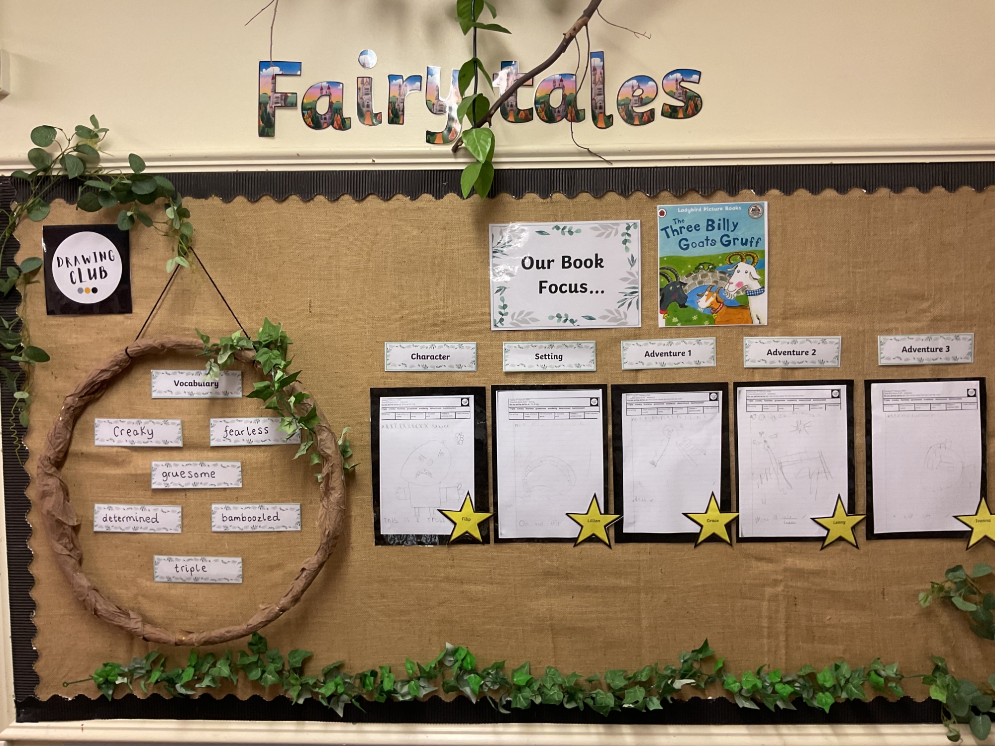 Children in Reception are really proud of their work and are really settling into drawing club. This week they have written about characters, setting and an adventure.