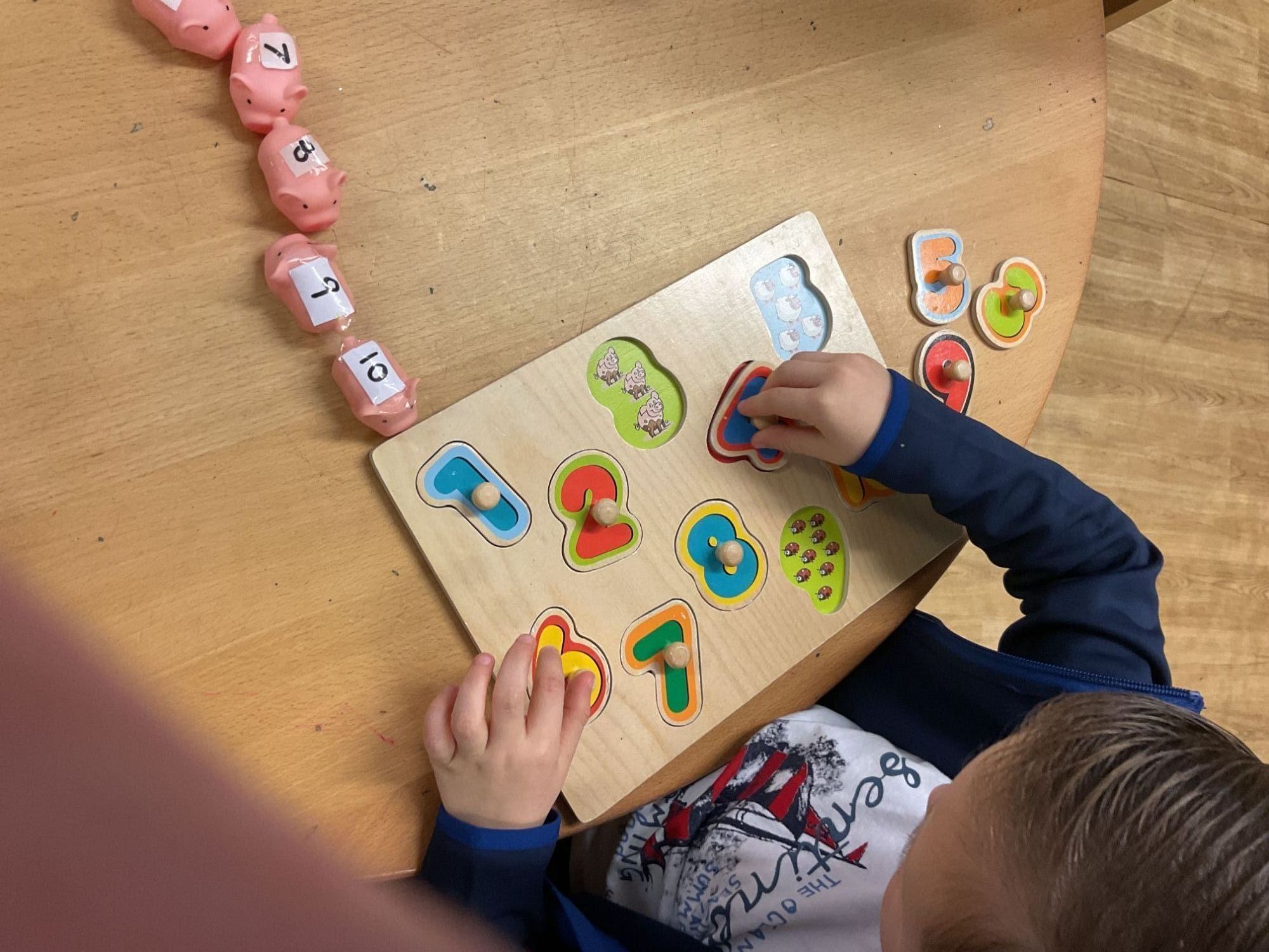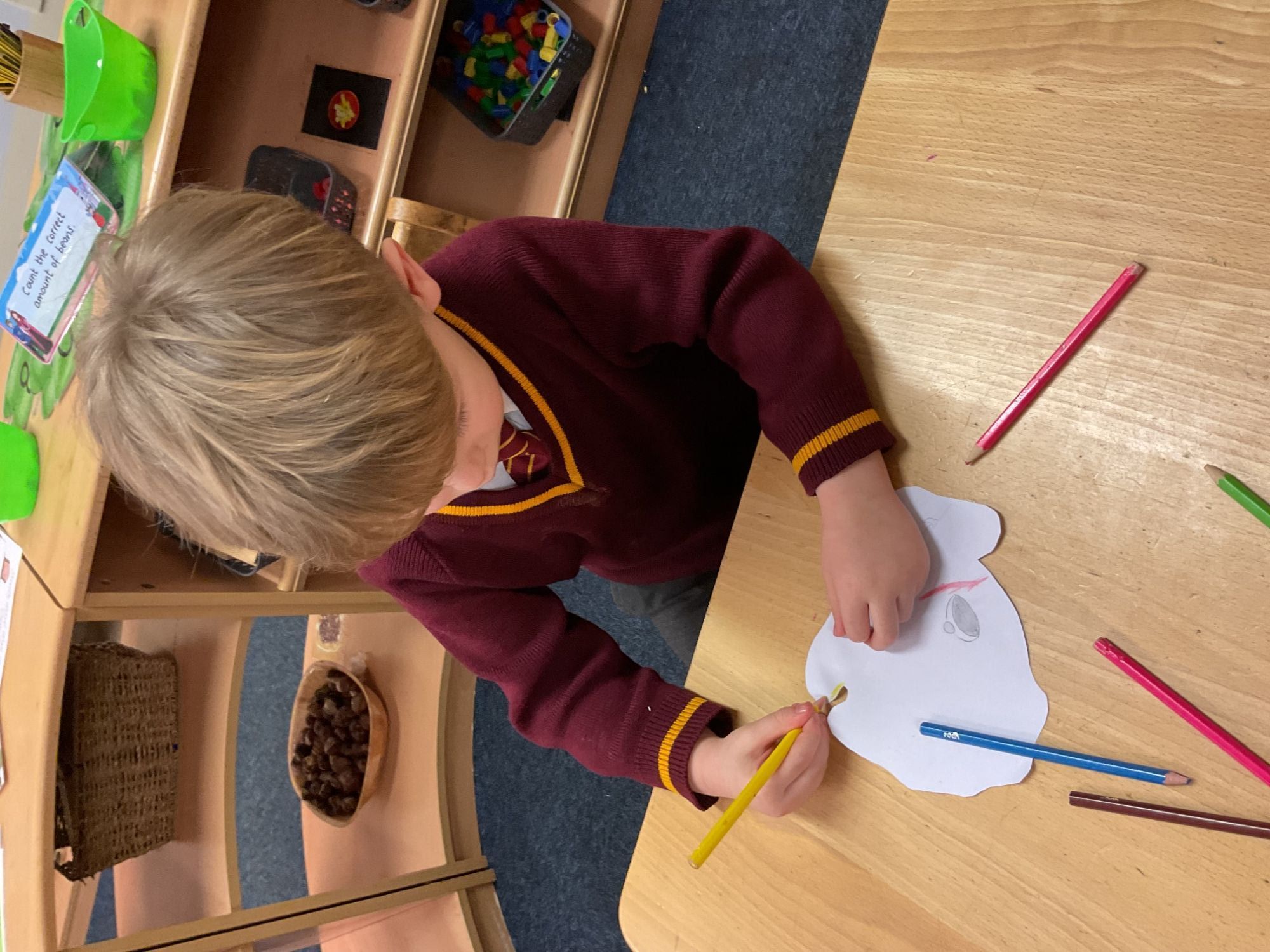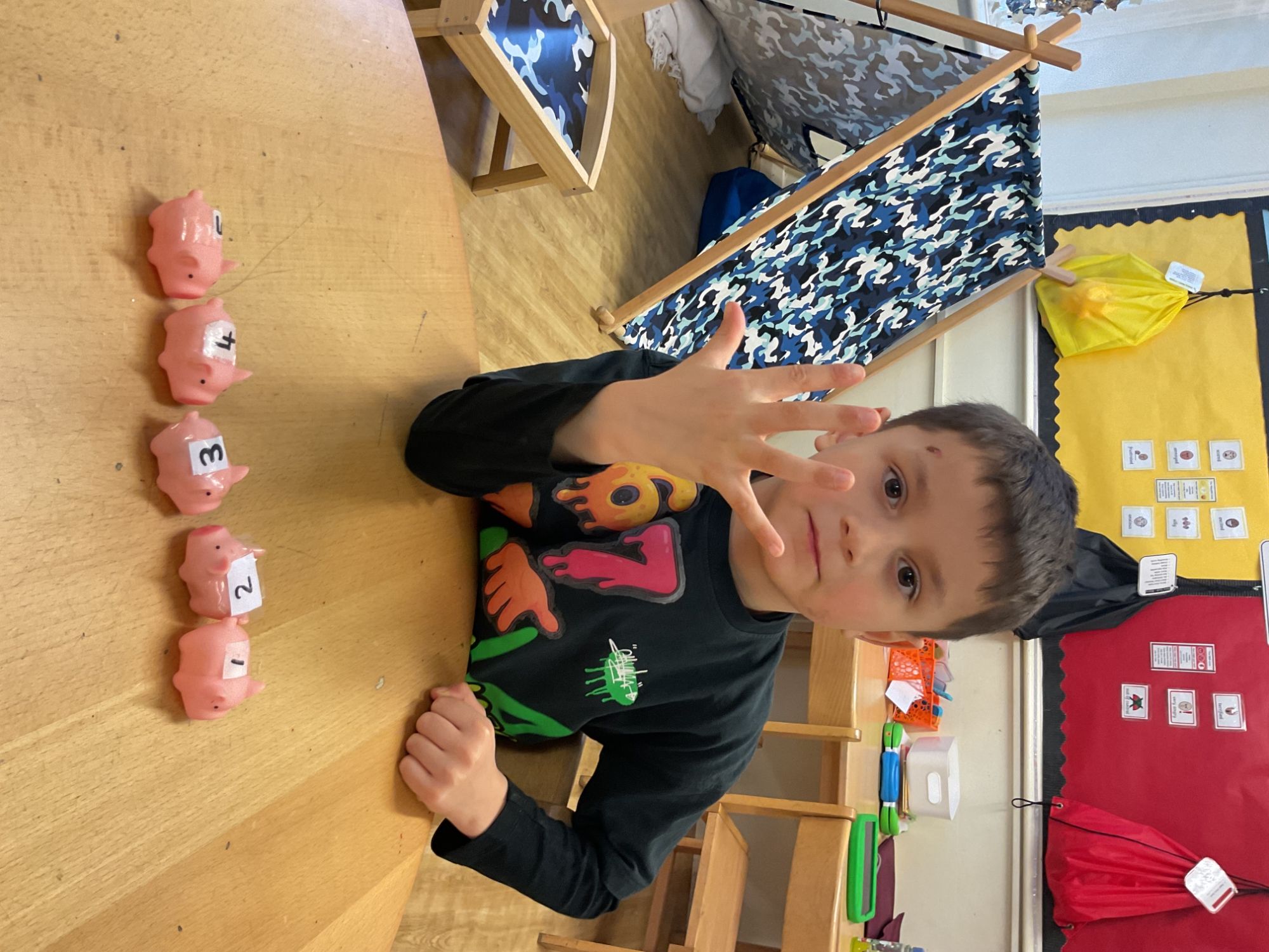 On Number Day, children were given a wide range of purposeful opportunities to explore and consolidate their mathematical learning through engaging, hands-on activities, with a clear focus on the number 5; this supported children to count reliably, recognise numerals, represent quantities, and explore different combinations that make 5, in line with the Mathematics ELGs.