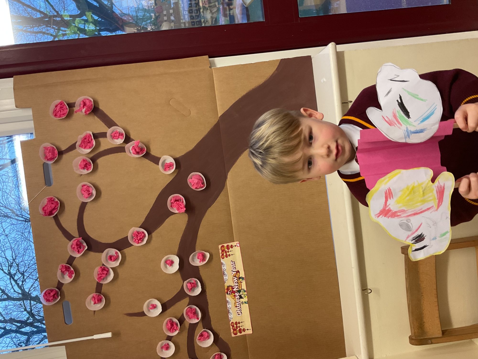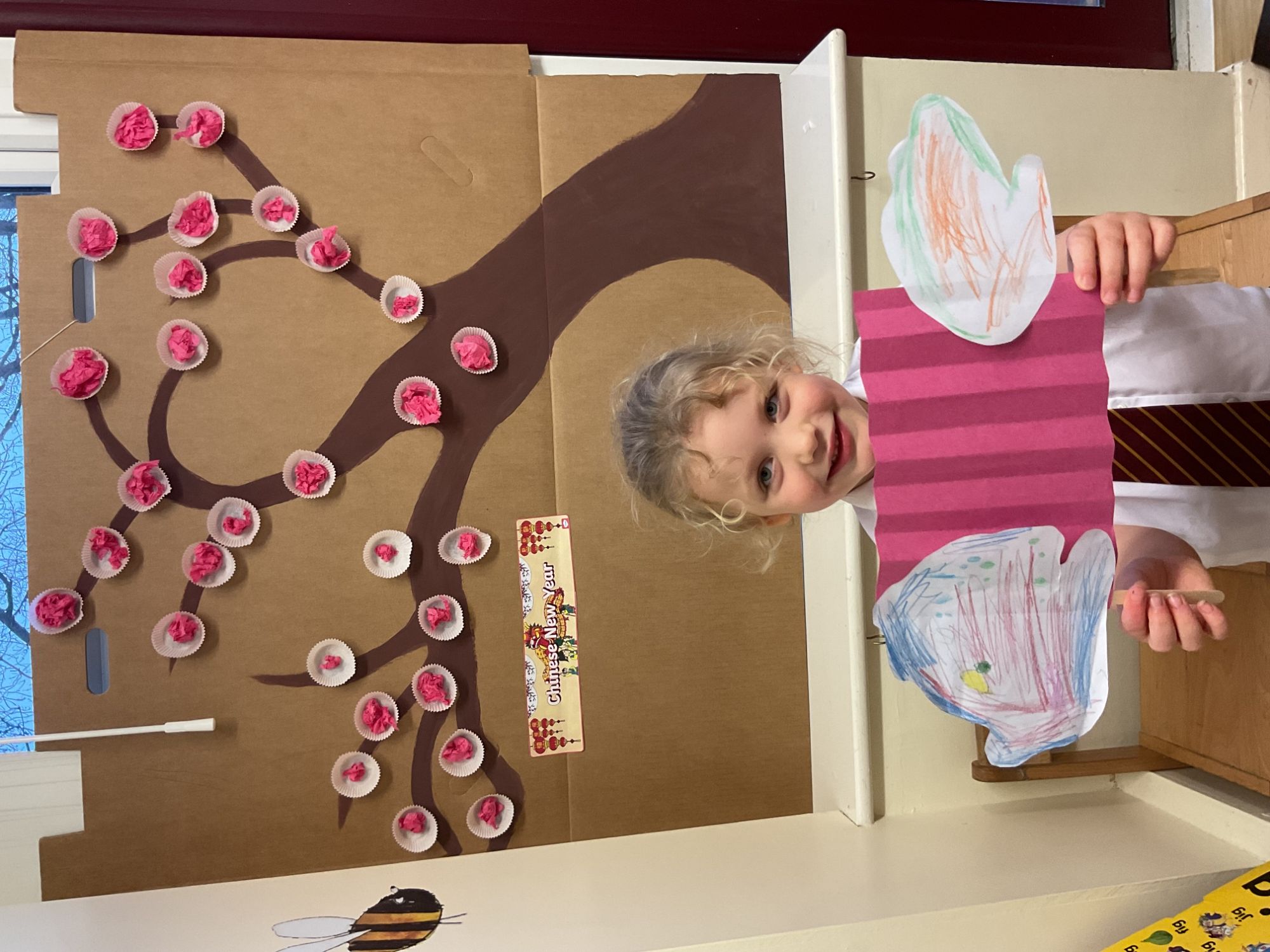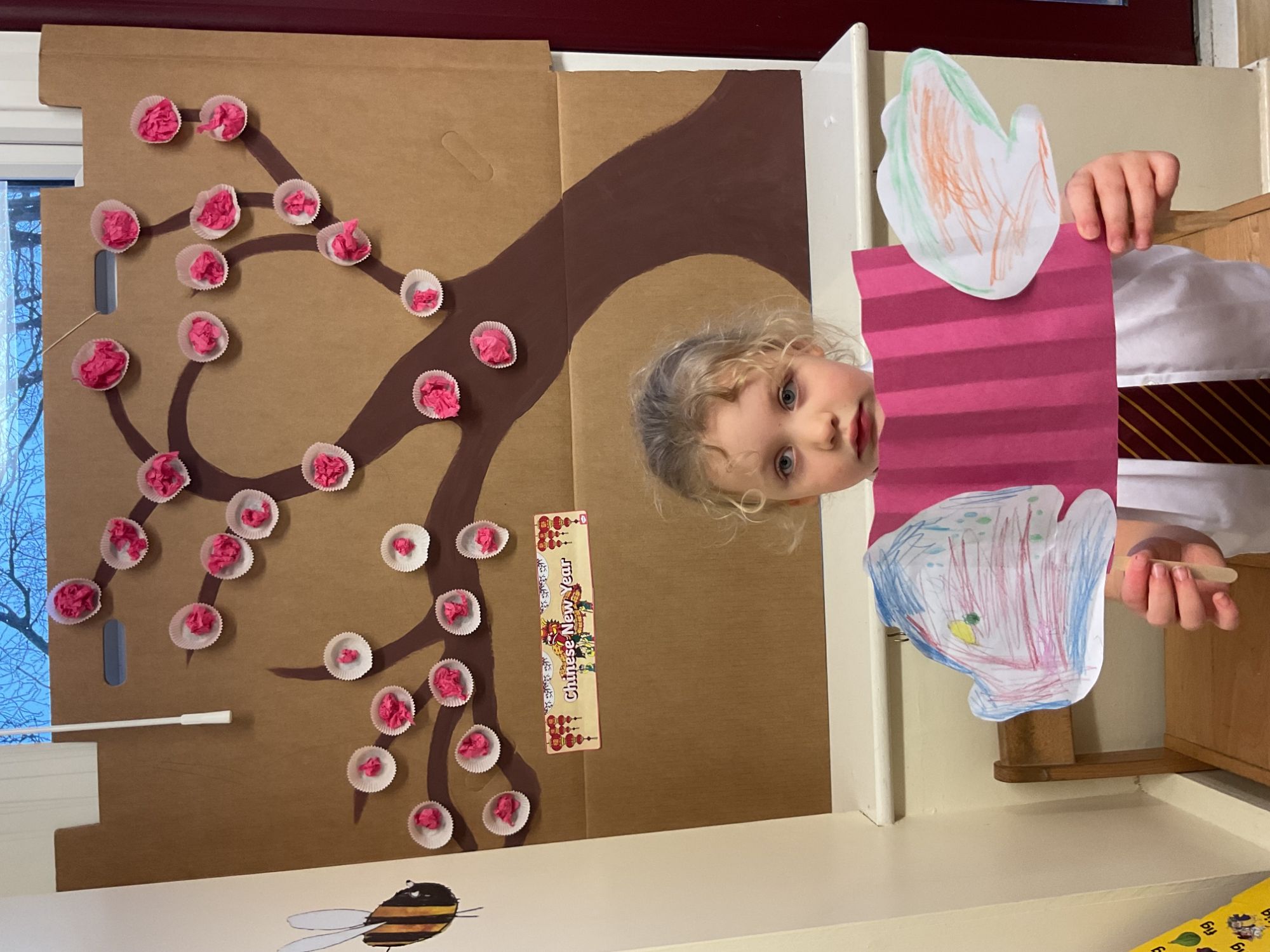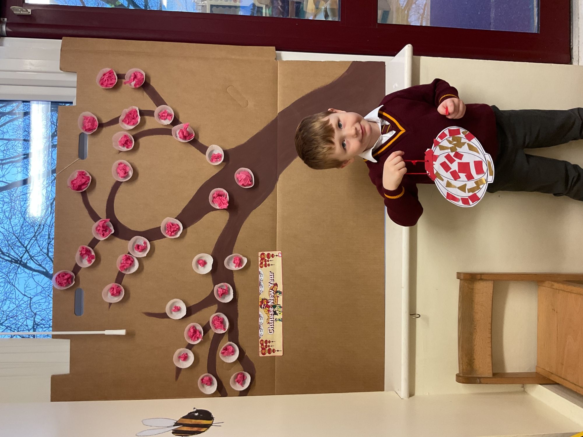 Children celebrated Chinese New Year by taking part in a dragon dance, learning about the Year of the Horse, and creating a Chinese wishing tree, dragon puppets, and lanterns.