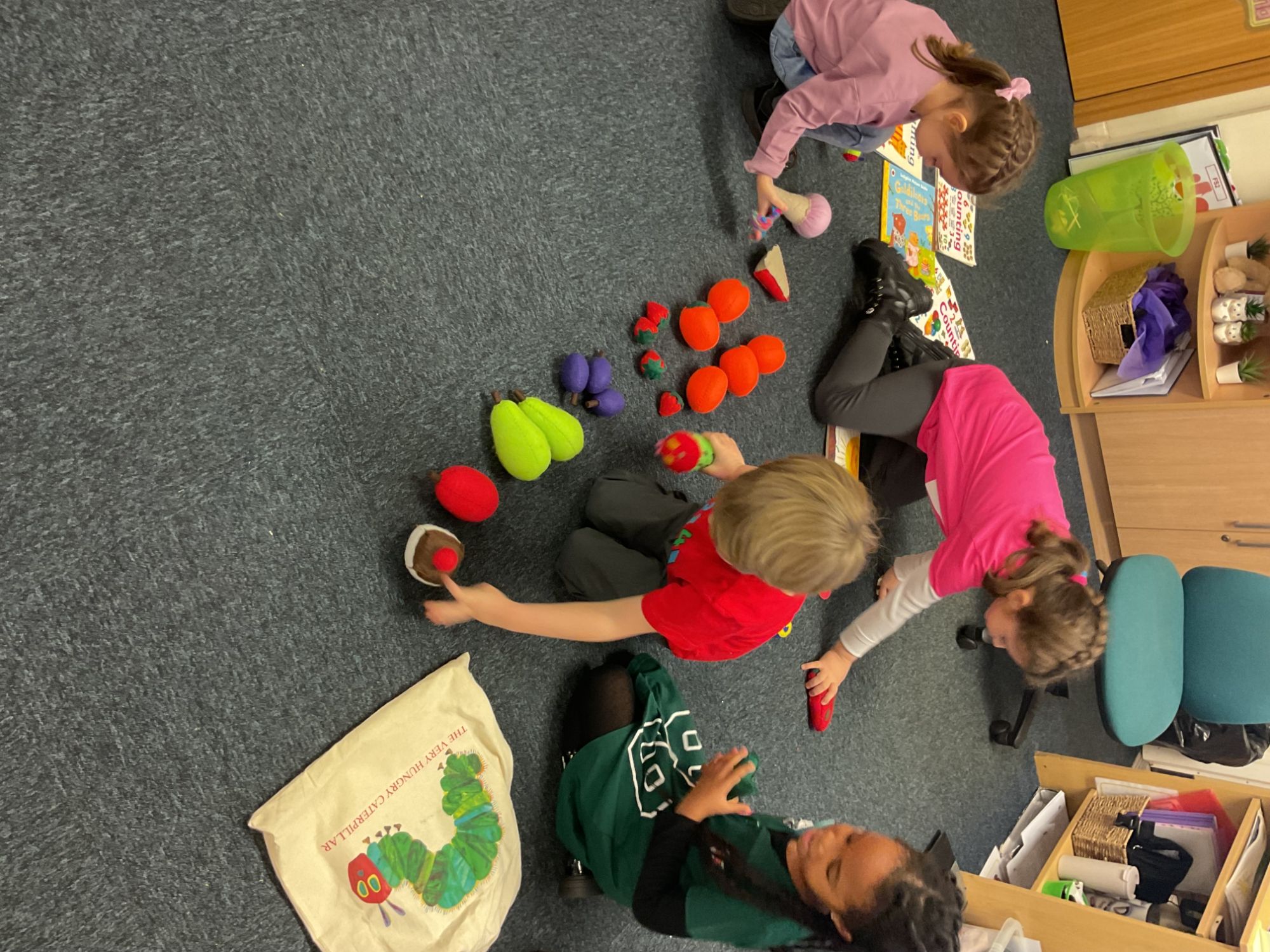 Reception children enjoyed looking at the books and listening to a story on their visit to the Reading Room today.