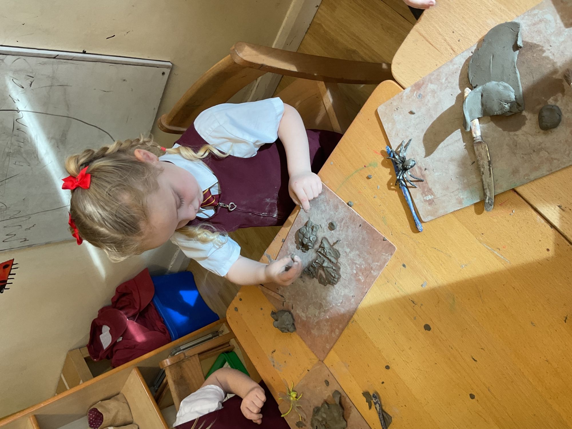 Children have been exploring and understanding clay and playdough through manipulation and experimentation; developing fine motor skills. They have looked at the shapes and patterns in clay animal sculptures and designed and made their own animal sculpture.