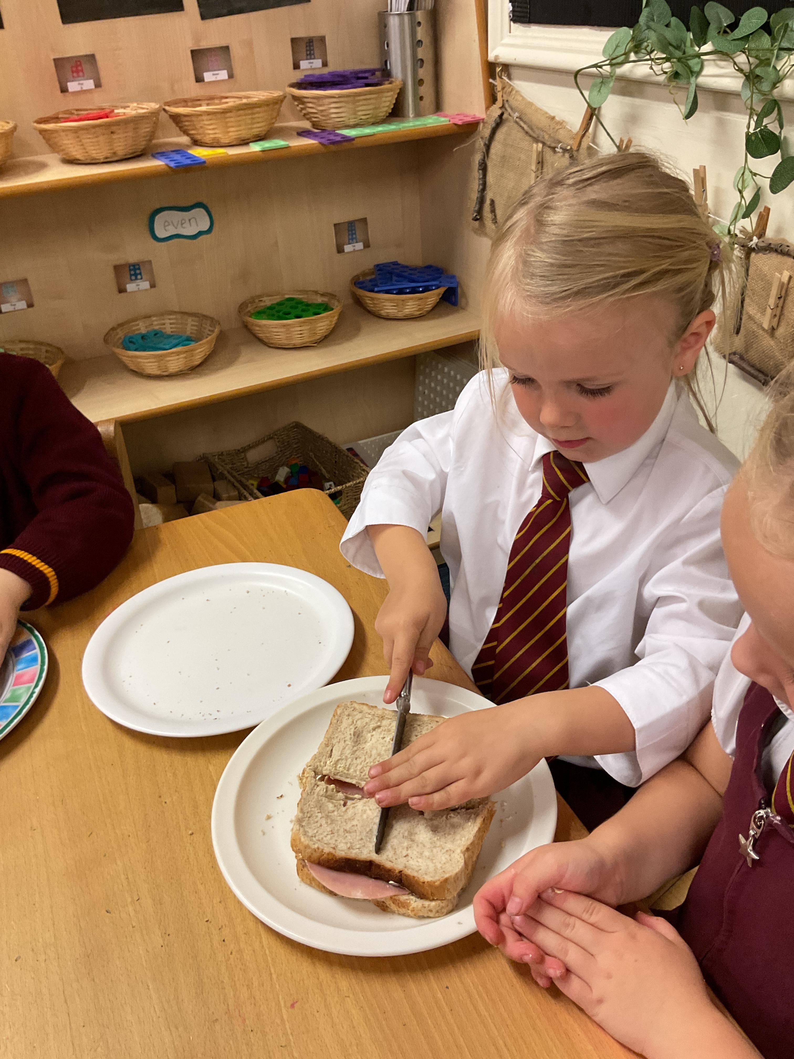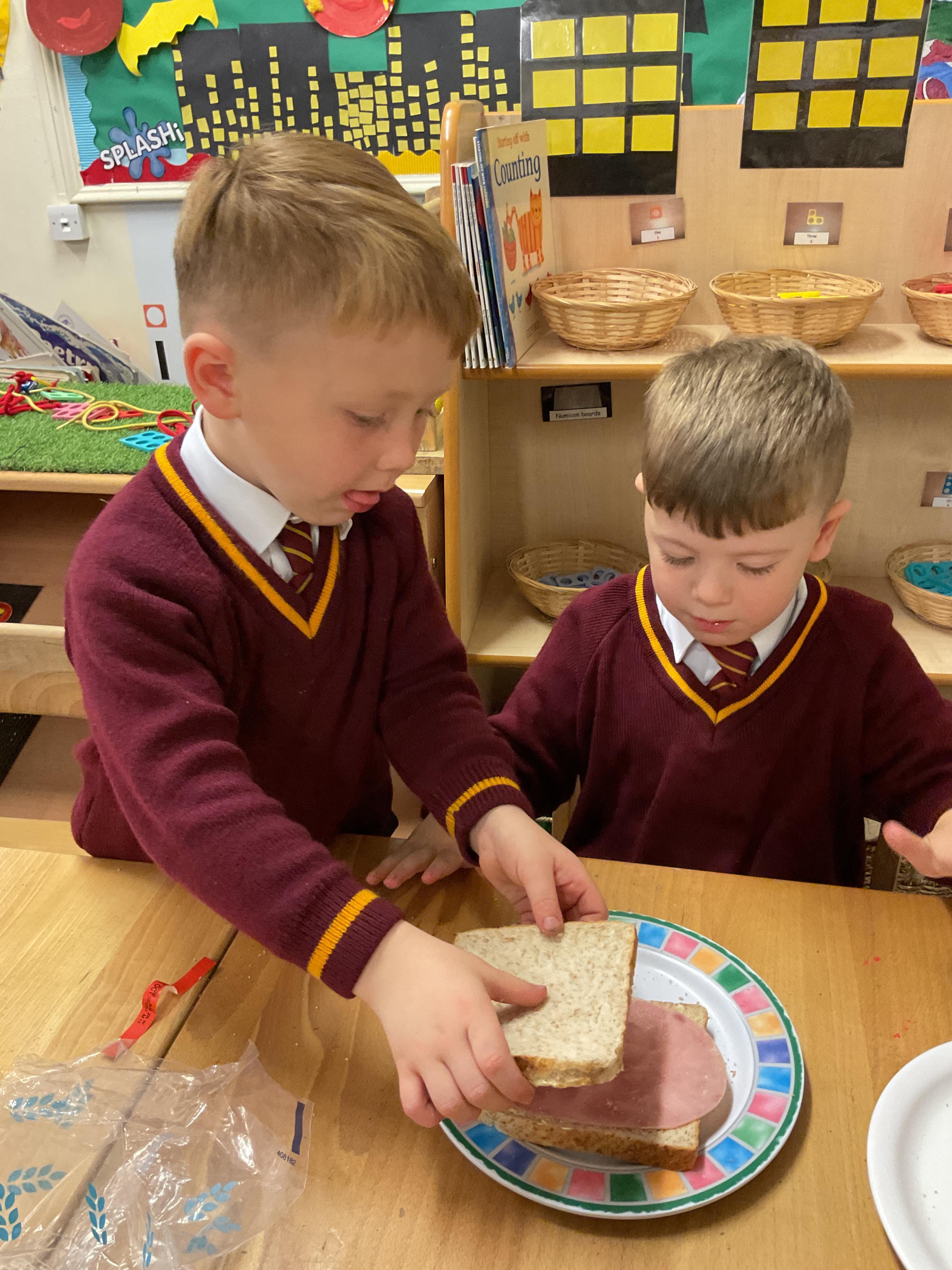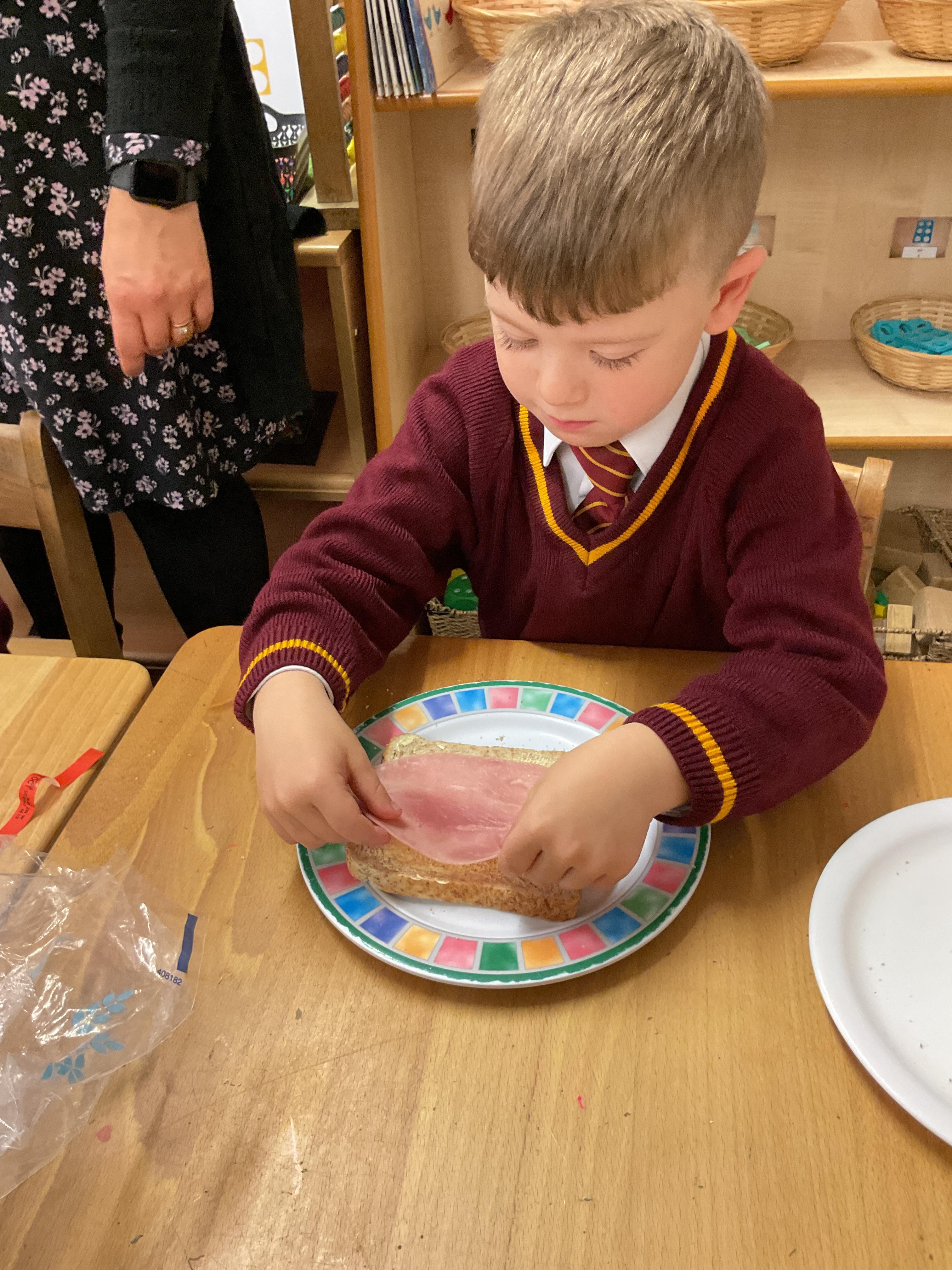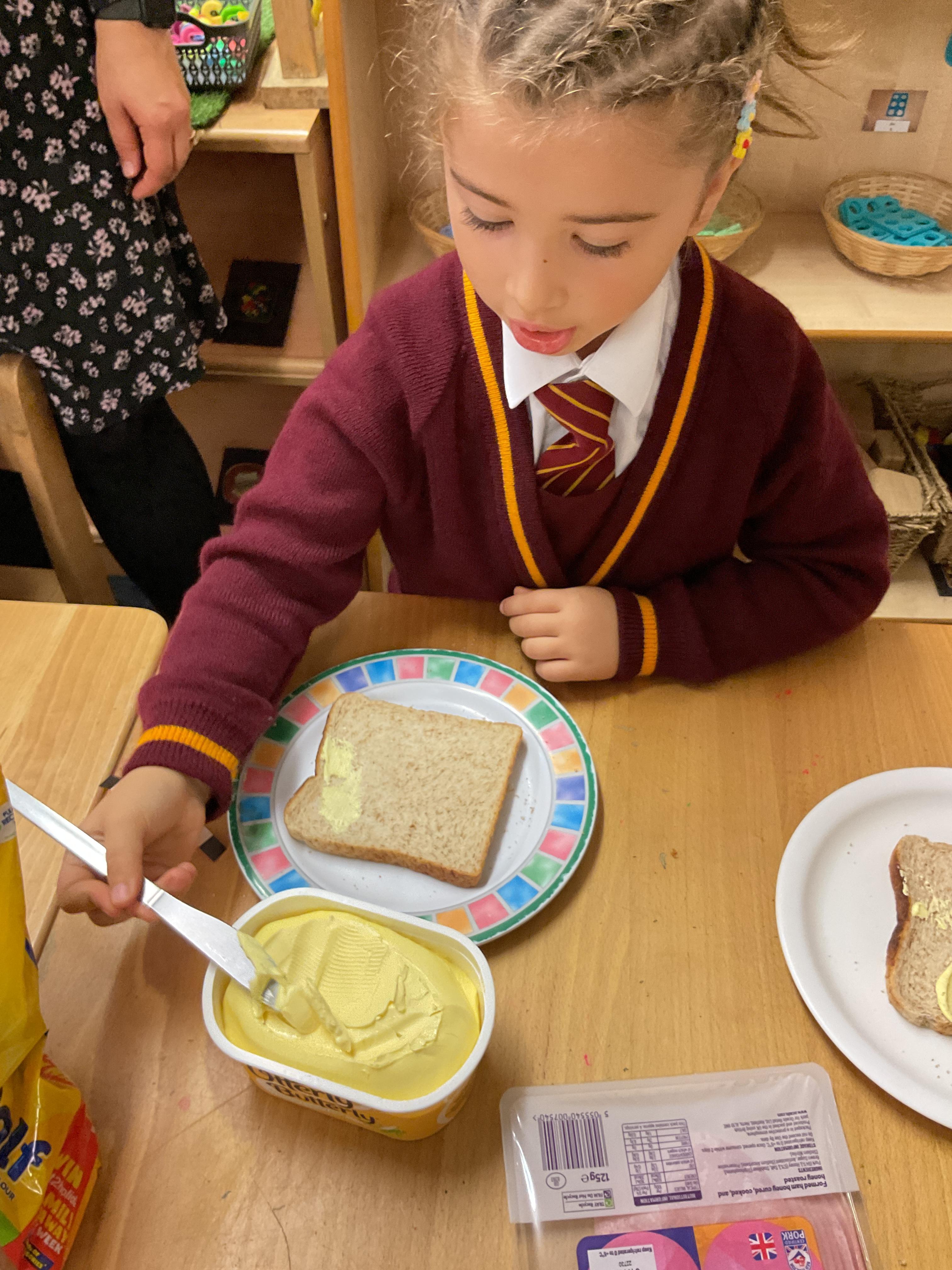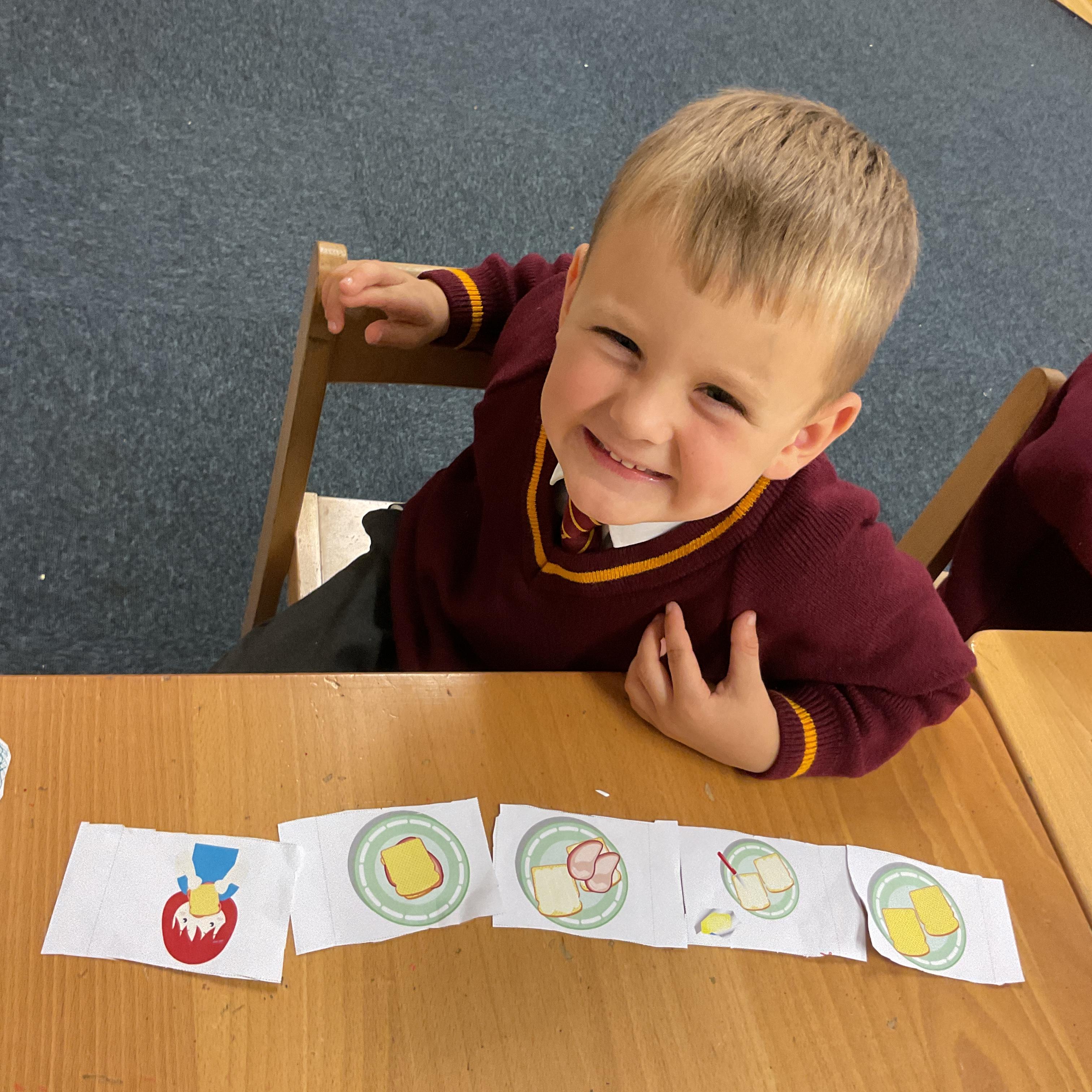 In Reception, the children explored the idea of algorithms by following simple, step-by-step instructions to make a ham sandwich. They discussed and sequenced each part of the process, from spreading the butter to adding the ham and carefully putting the sandwich together. This practical activity helped the children understand that algorithms are just clear sets of instructions that need to be followed in order. The children enjoyed predicting what might happen if steps were missed or done in the wrong order, developing their problem-solving, listening, and early programming skills in a fun and meaningful way.