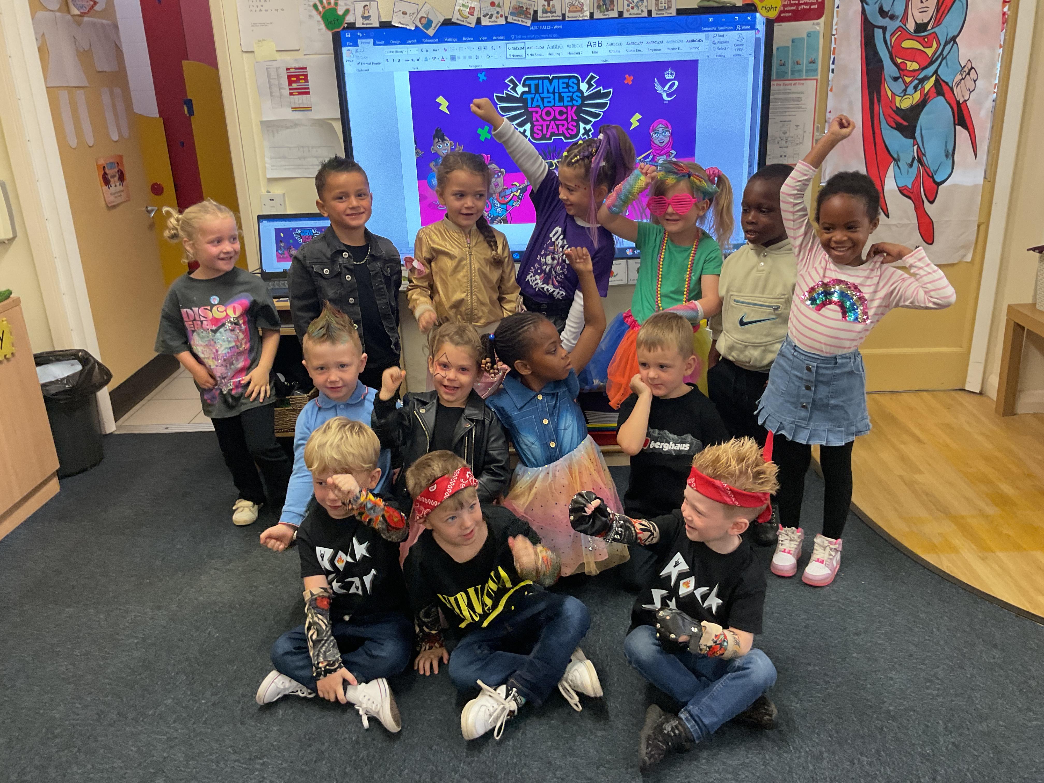 Reception had a fantastic time celebrating our whole school TT Rockstars Day! The children loved dressing up as rockstars and had lots of fun making their very own number guitars. They linked their music lessons to TT Rockstars by using their bodies to make music, and they also explored a wide range of exciting maths activities and resources across our provision.