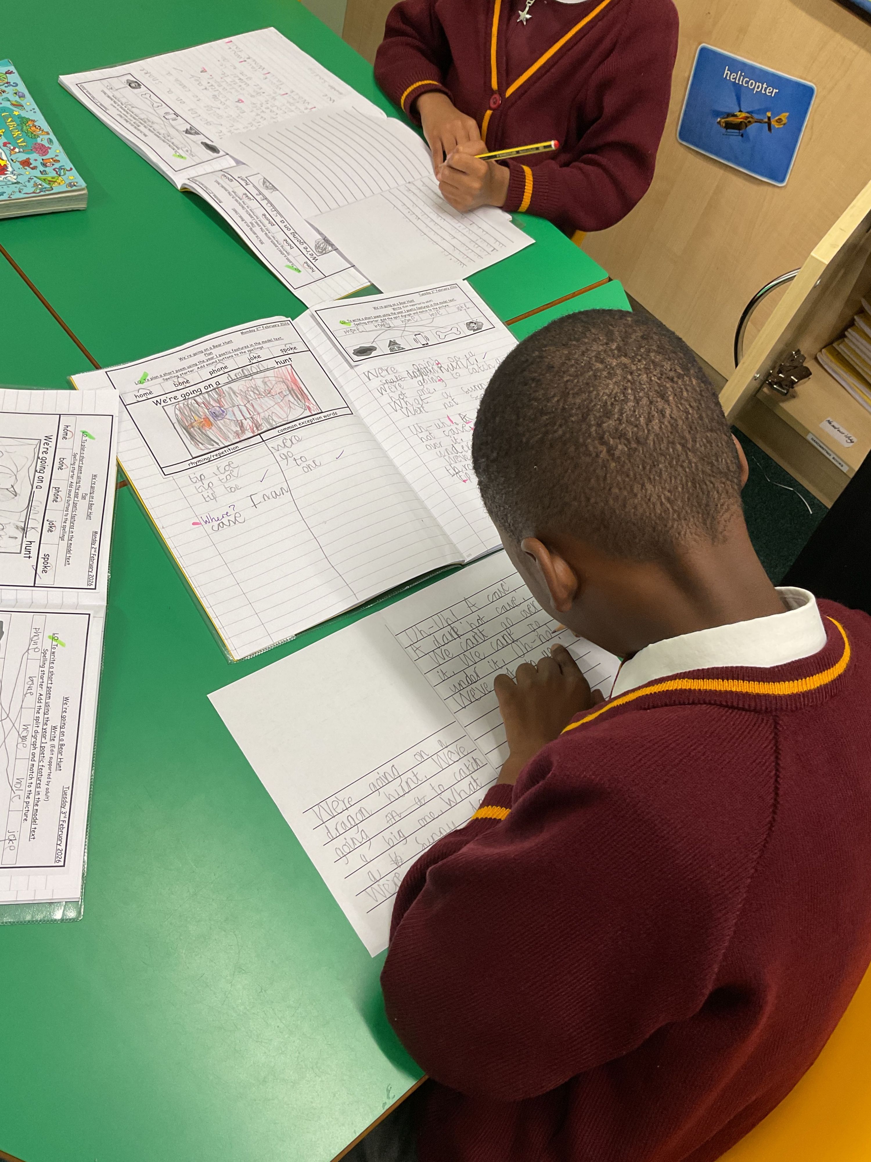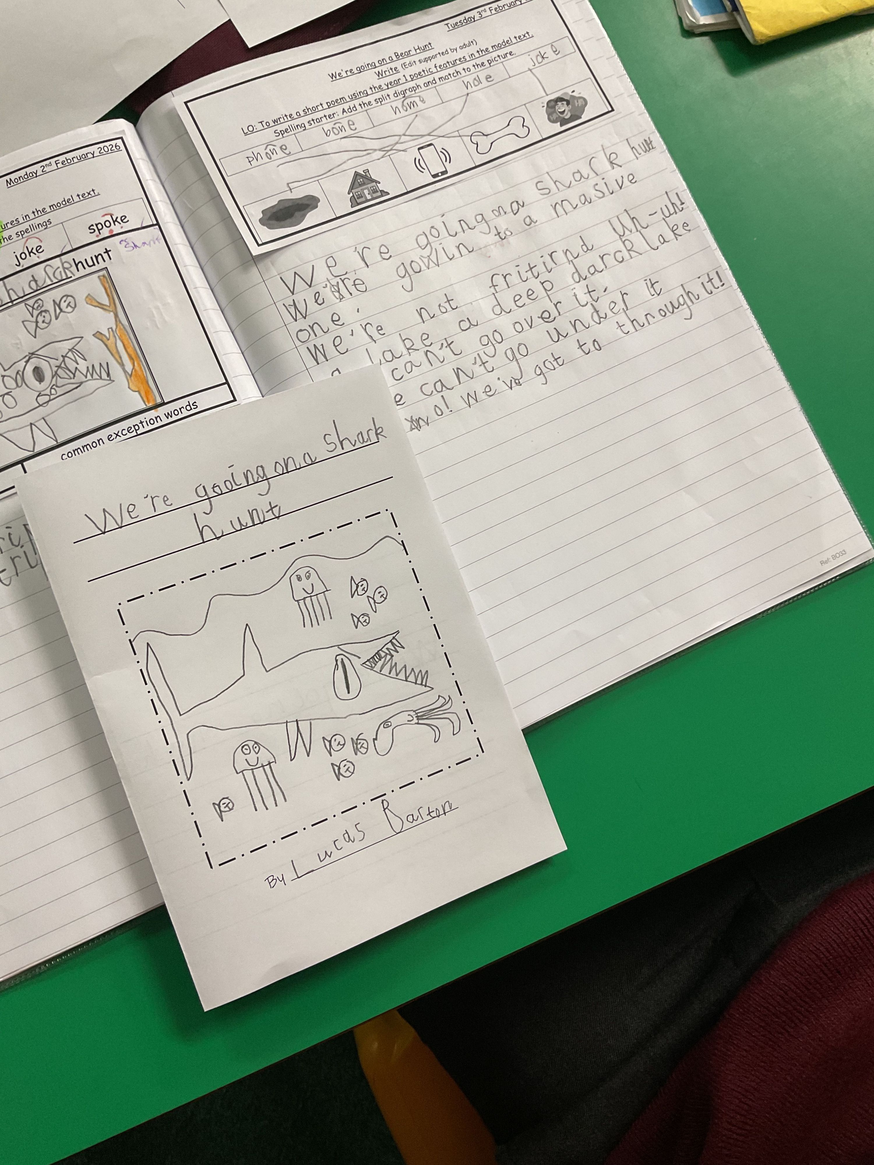 Year 1 created their own poetry books to publish their own versions of 'We're going on a bear hunt'.