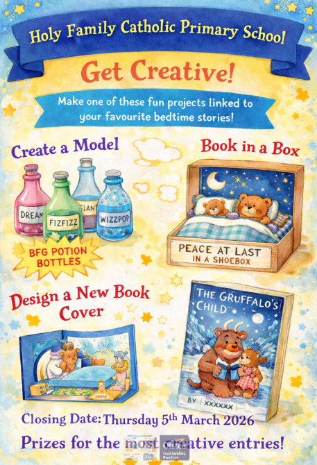 Reading is at the heart of all our learning at Holy Family. To support this at home, please could all children ensure that they read their school reading book every night and that their reading record is signed by an adult. Children need a reading book in school each day. Books are closely matched to their reading ability and will be changed as they improve and can answer comprehension questions about the text.