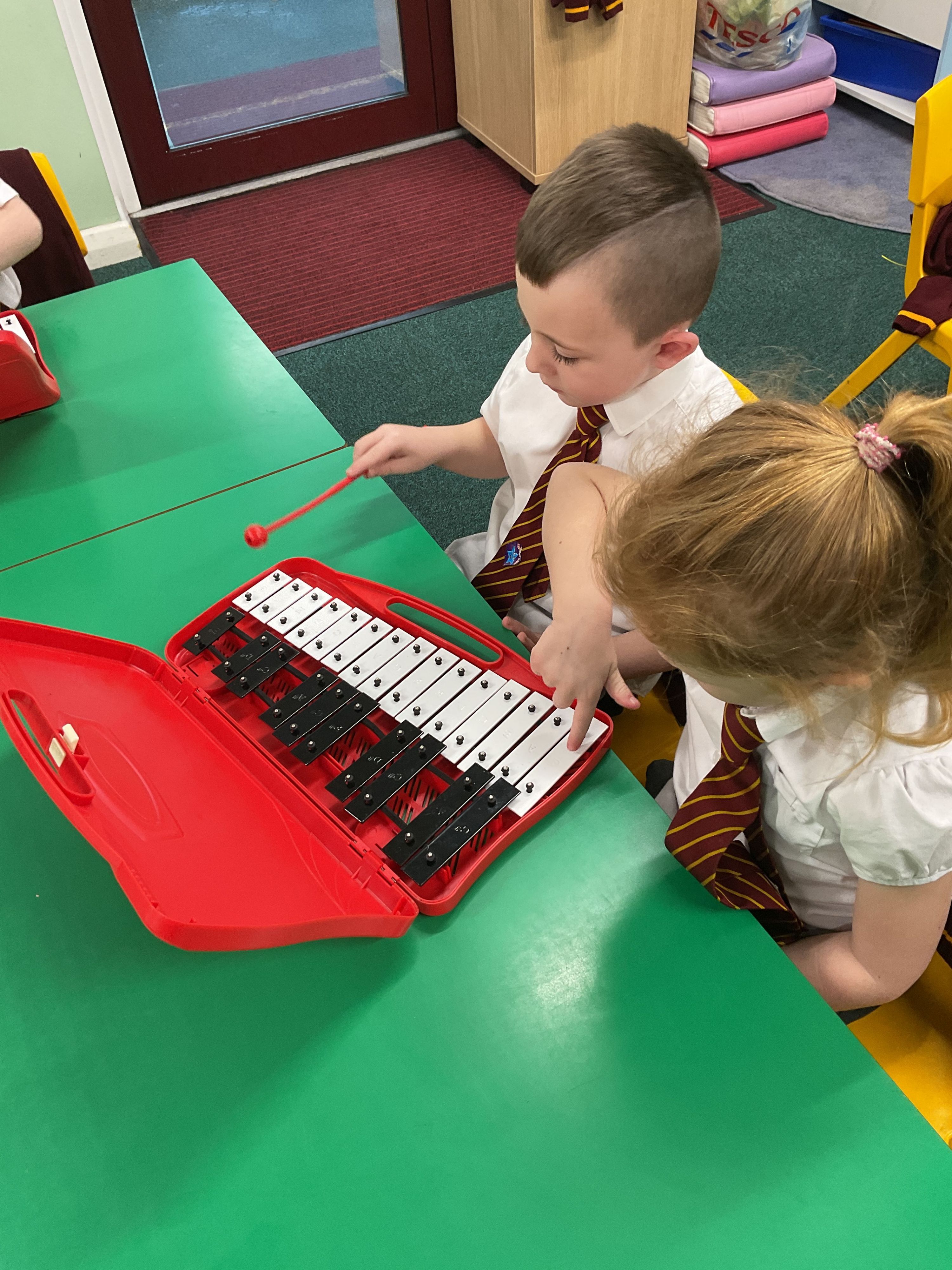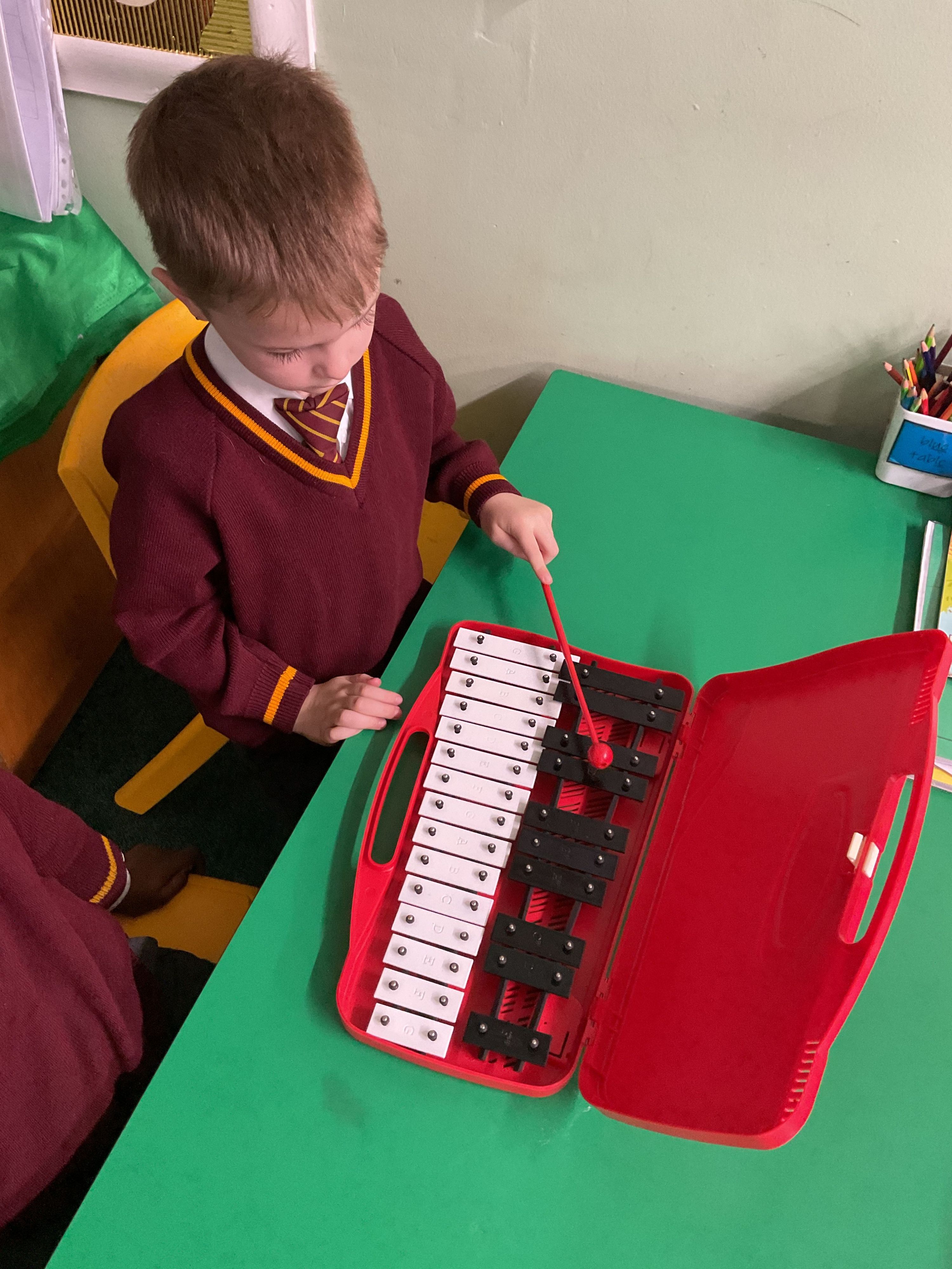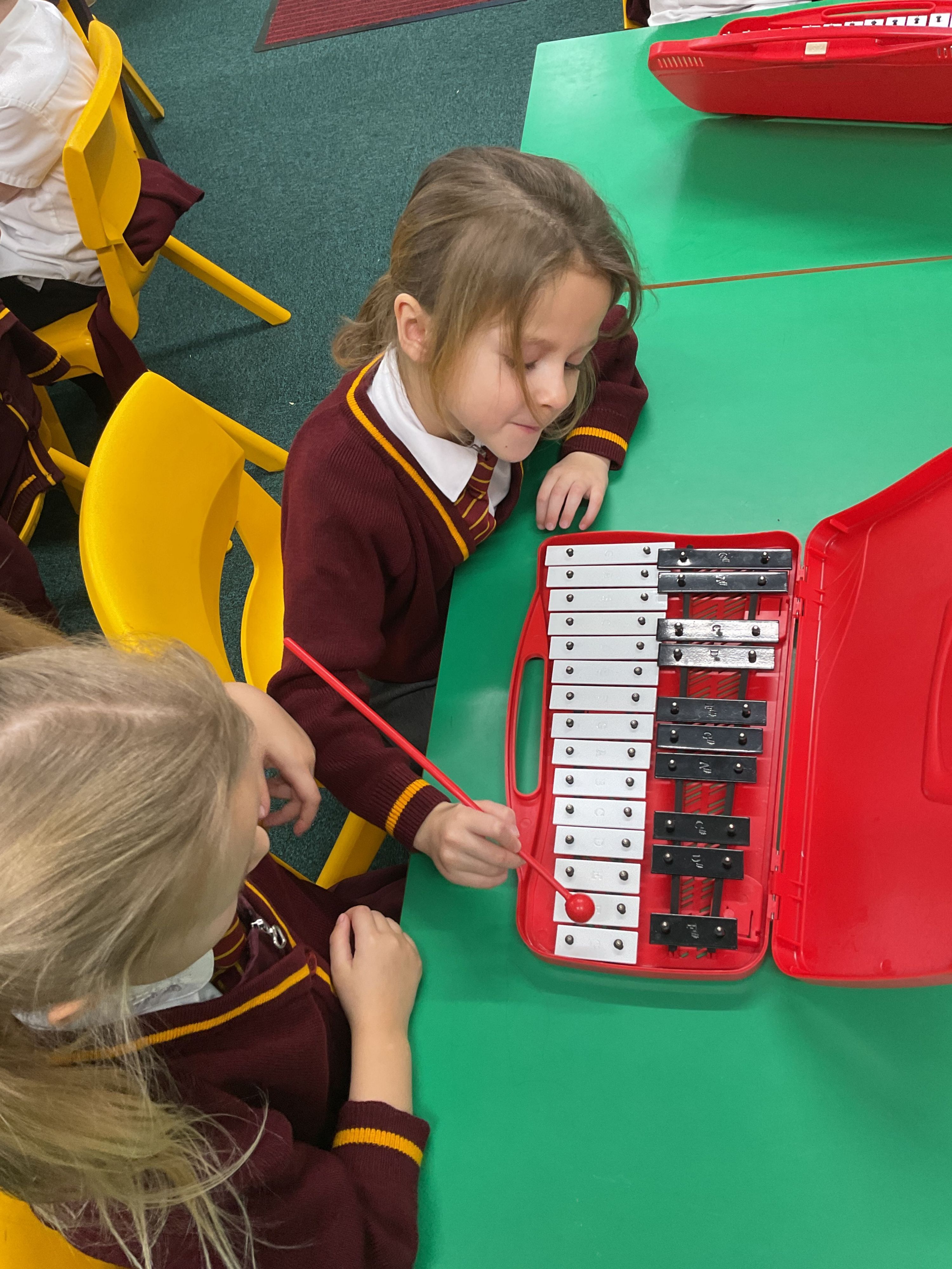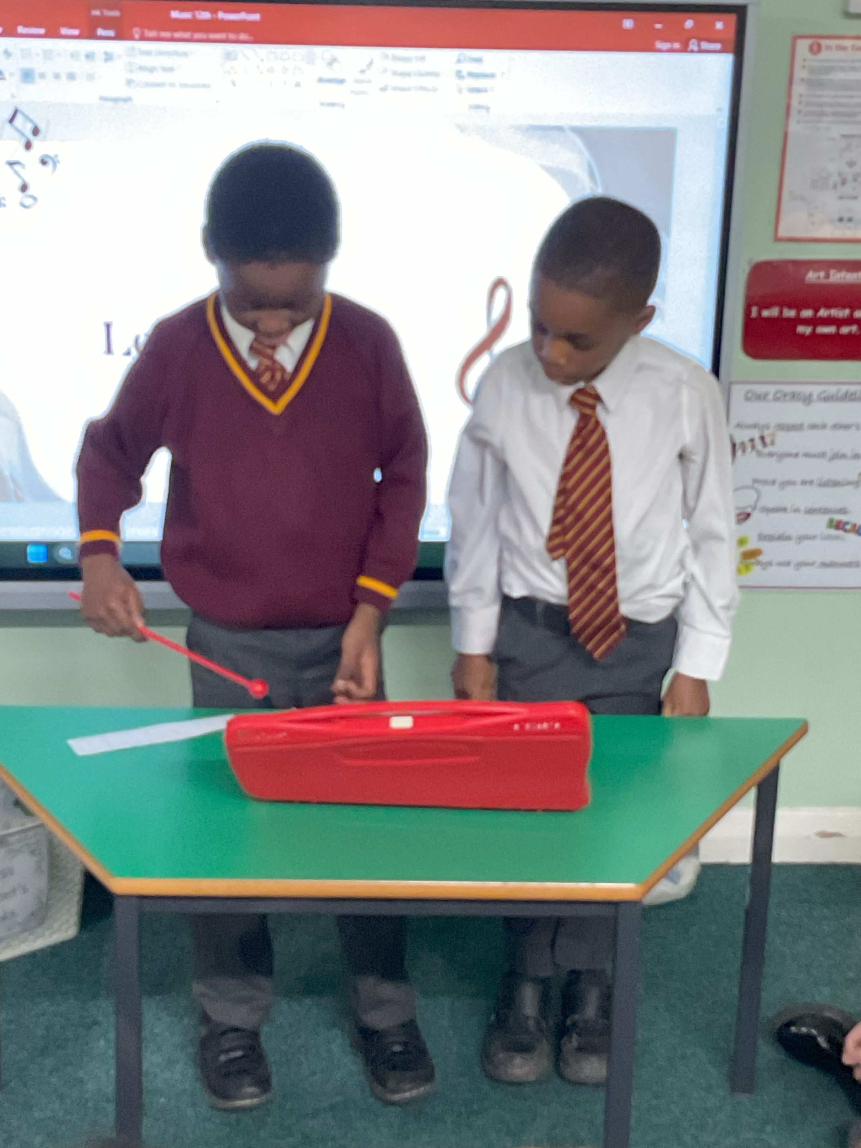 Year 1 loved creating and performing their own superhero theme tunes using patterns of high and low-pitched notes and creating rhythms.