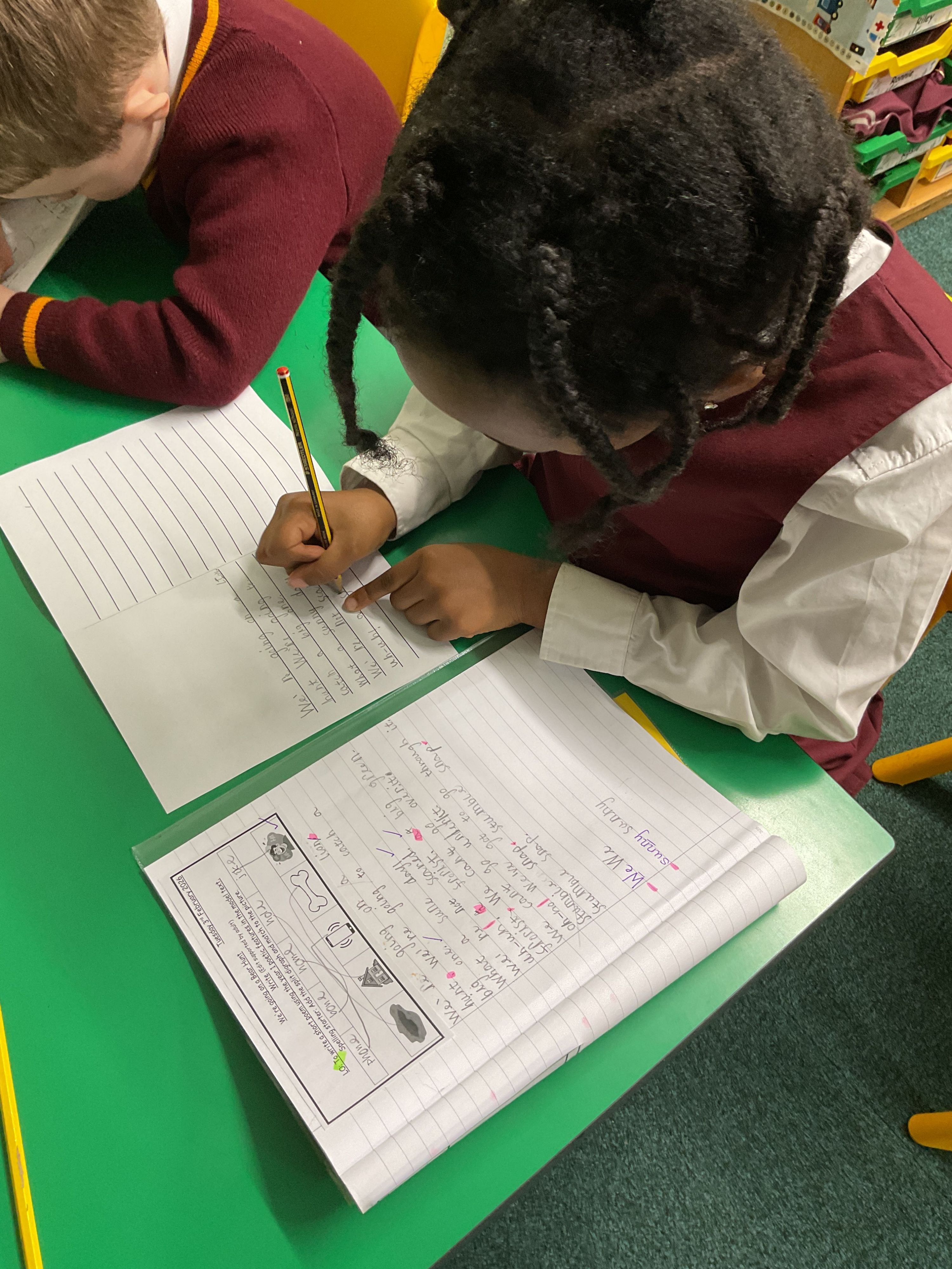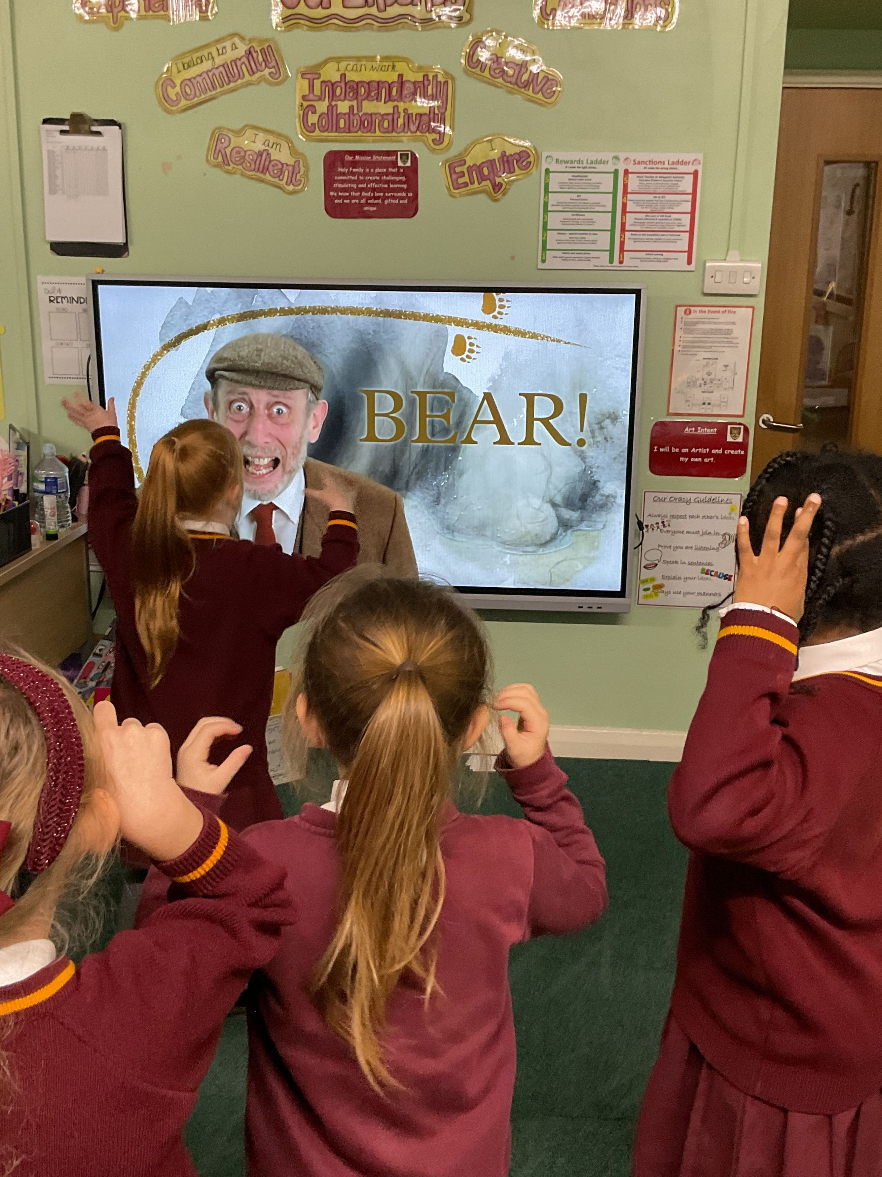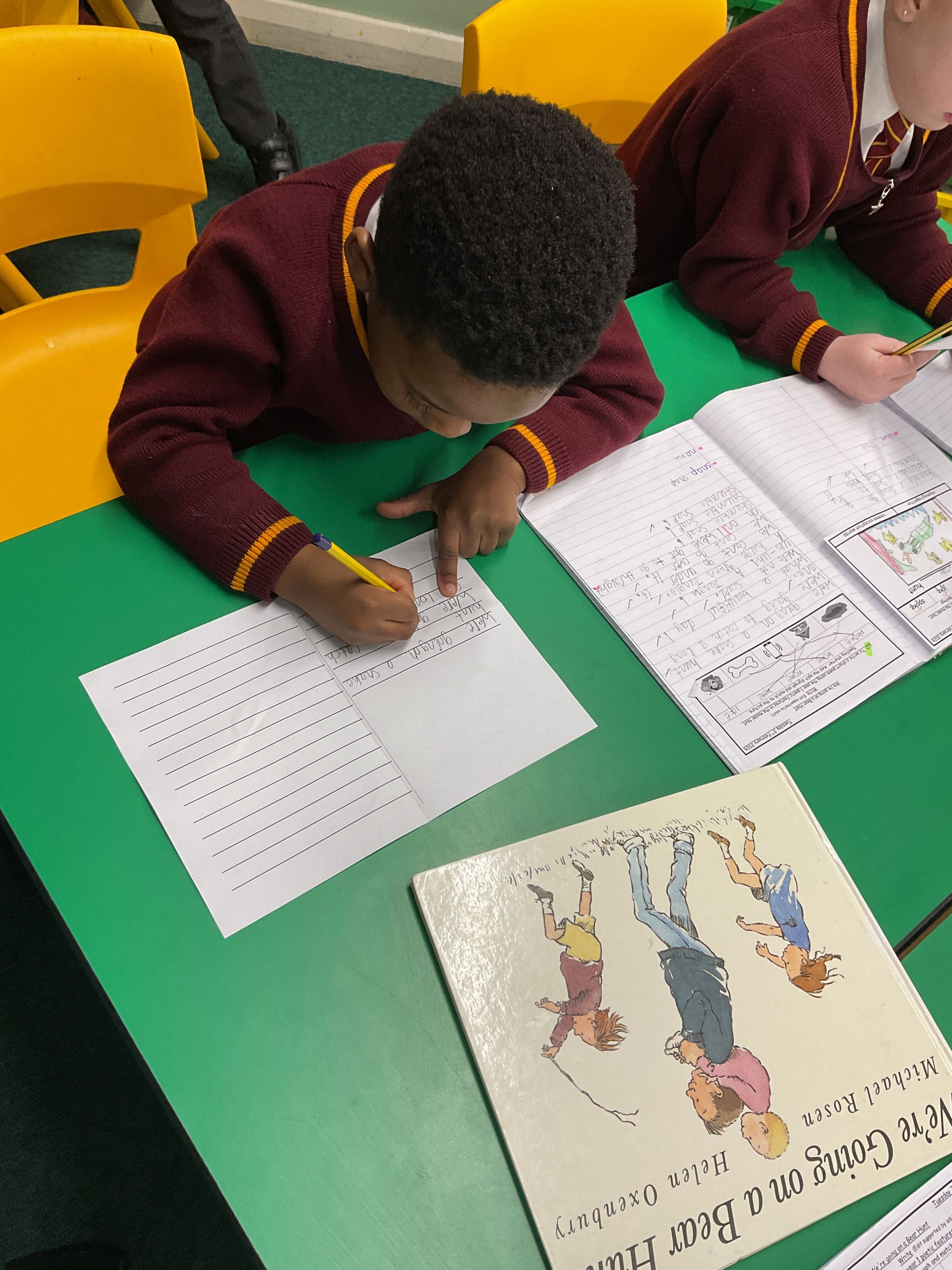 As a class, we read the story ‘We’re going on a bear hunt’. We discussed what we liked and disliked. We thought about our favourite words and phrases. In groups, the children decided about what actions and sounds we could add to the story. We rehearsed the story and then performed it.