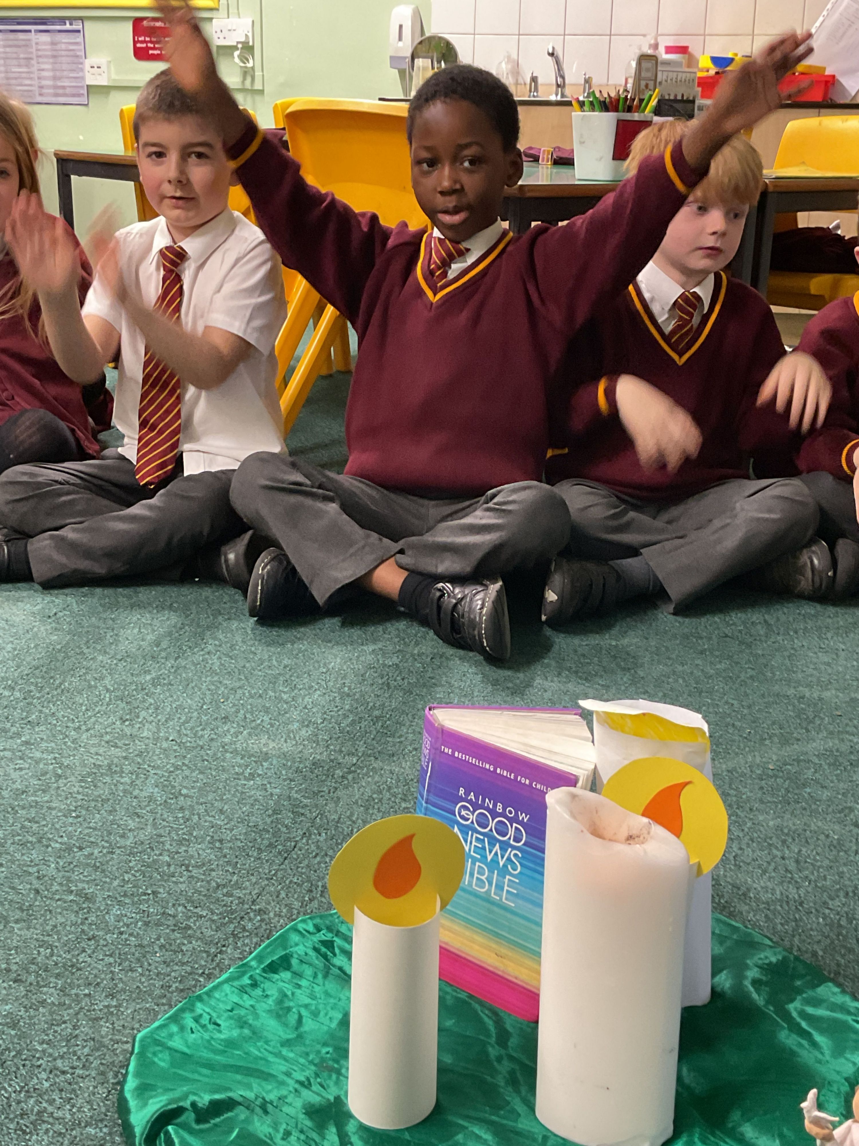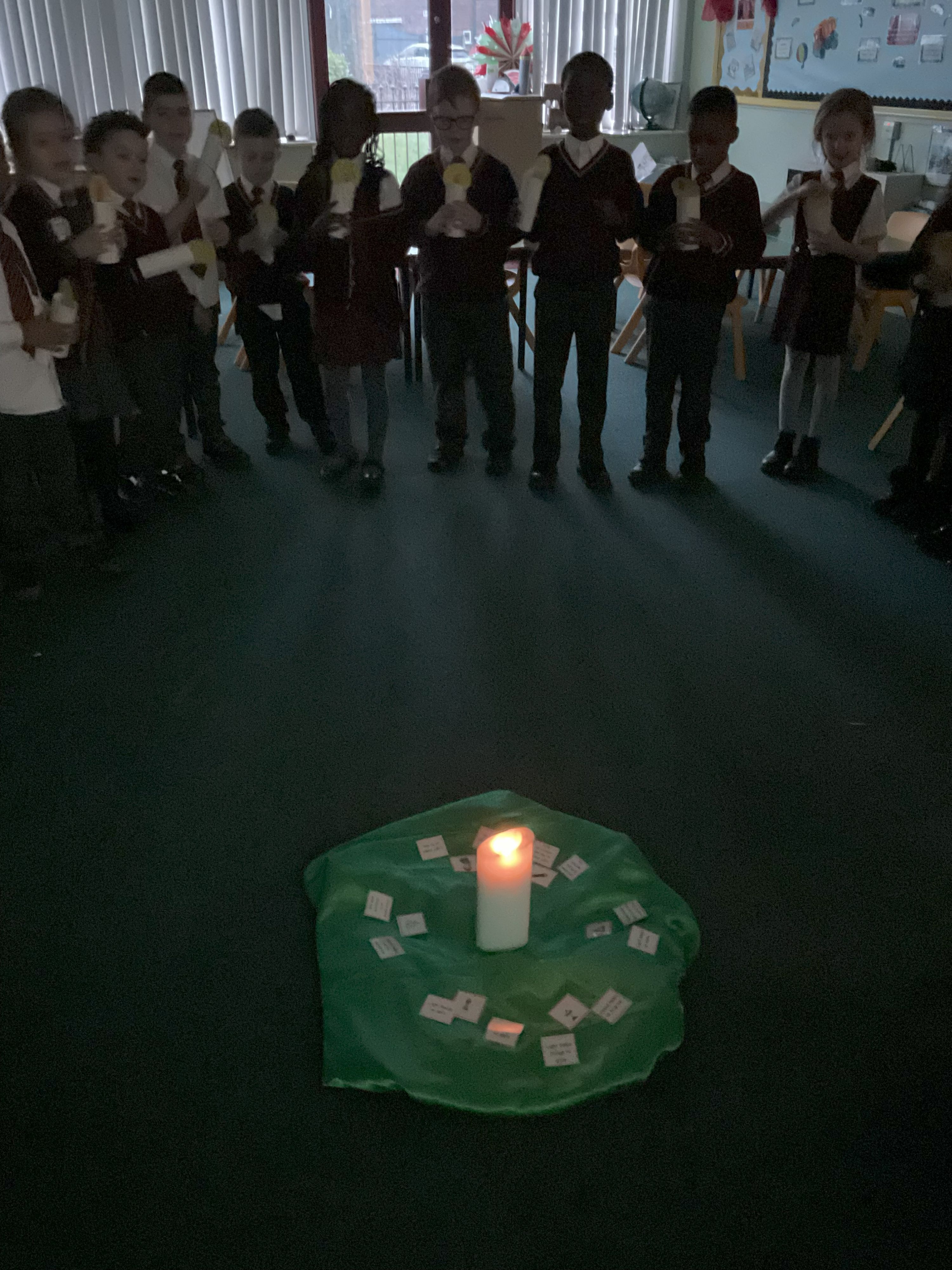 Year 1 took part in a Celebration of the Word linked to The Baptism of Jesus (Matthew 3:13–17). The children explored the Word of the Week, Baptism, and created candles to represent Jesus as the Light of the World. They also shared different ways they can bring light to others just like Jesus.