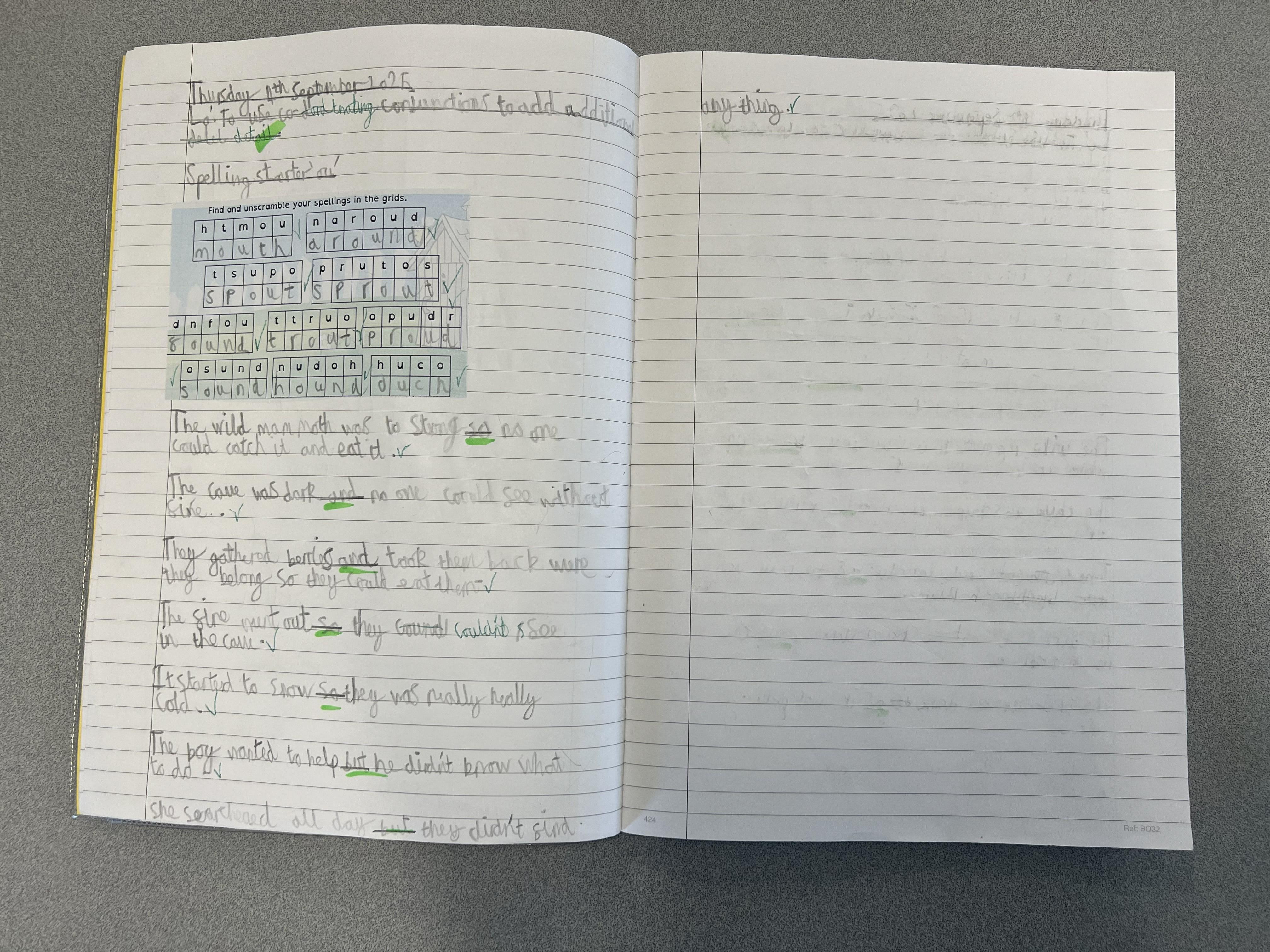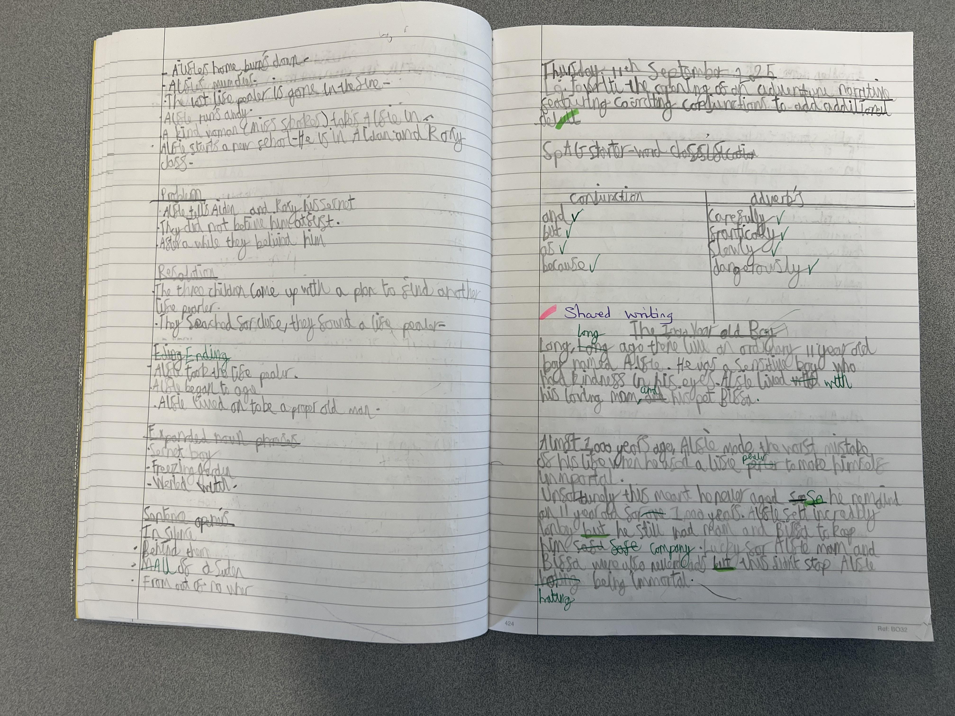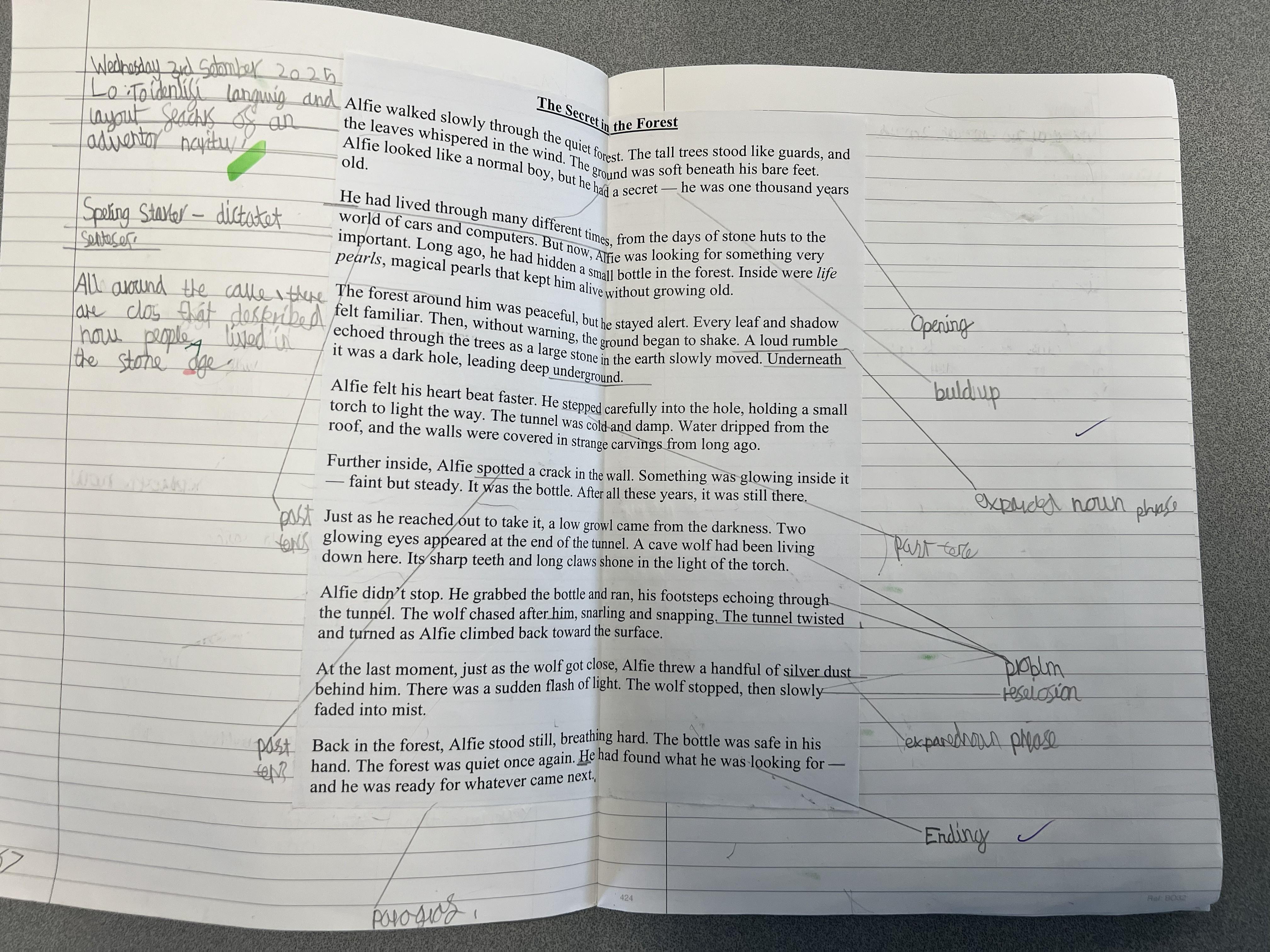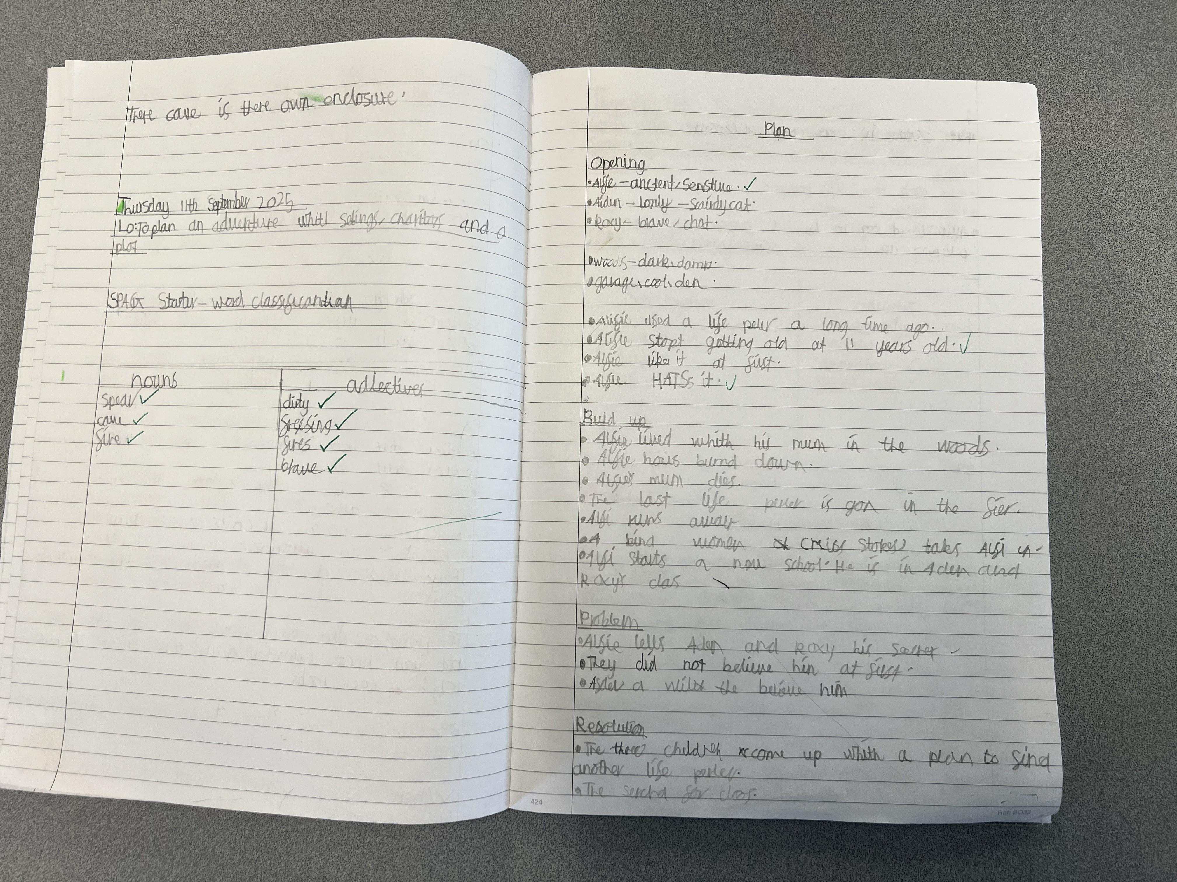 Year 3 have written their own adventure narratives based on the story, '1,000 year old boy'. Children have used adverbs to express time, co-ordinating and subordinating conjunctions and spelling words ending in -sure.