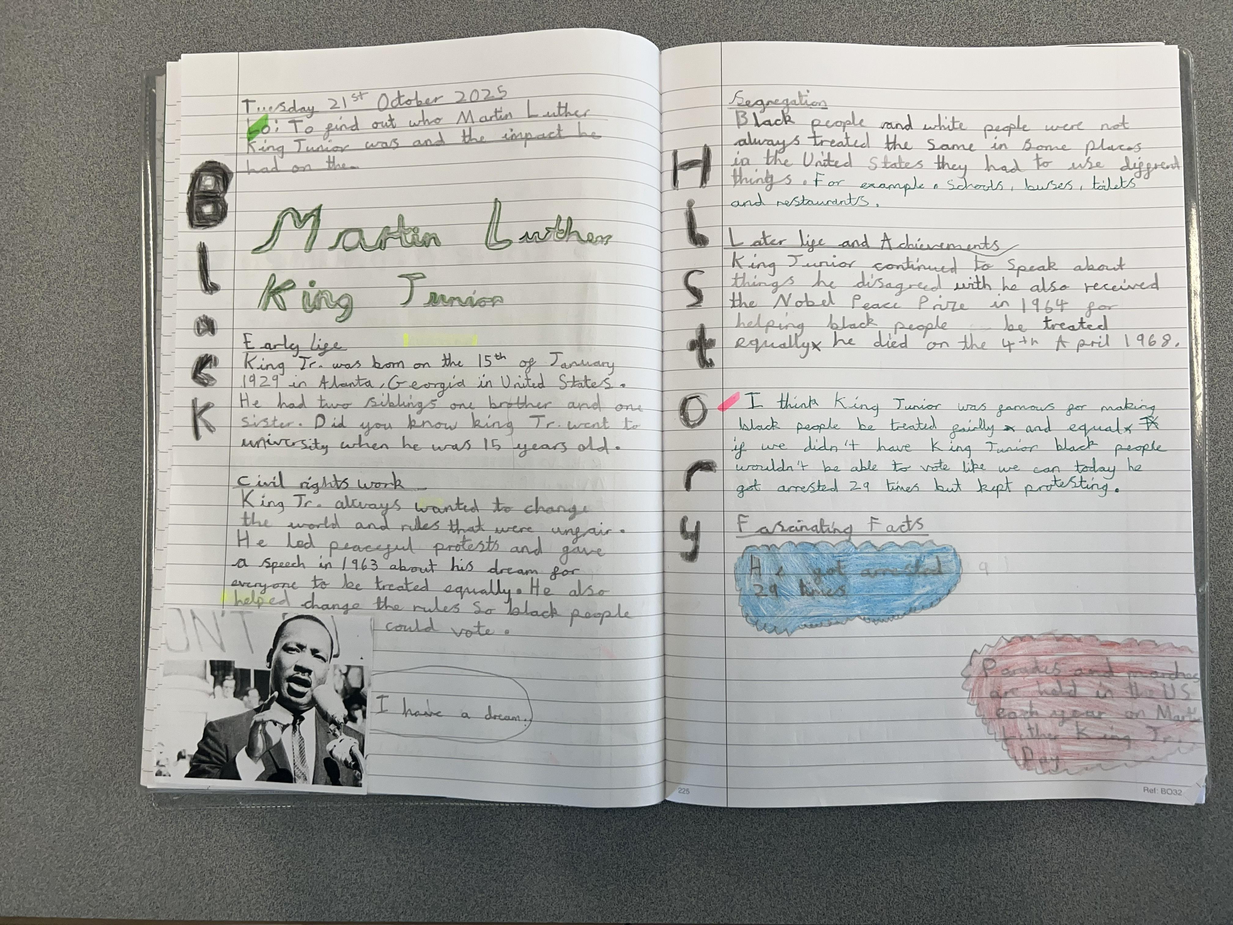 This year the Black History Month theme is 'Standing Firm in Power and pride.' Year 3 have studied Mary Seacole and Martin Luther King Jr who are icons that stood firm for justice.