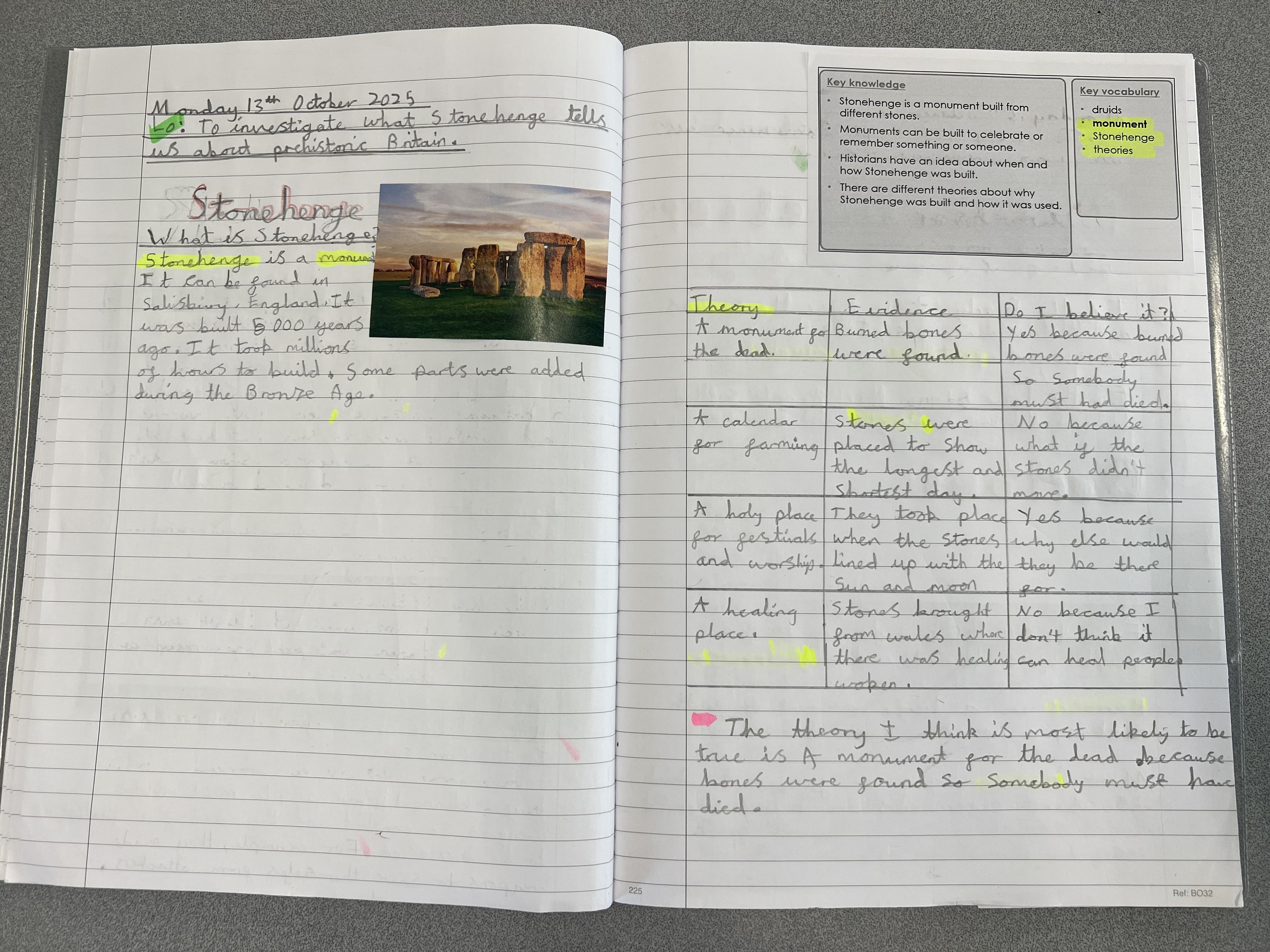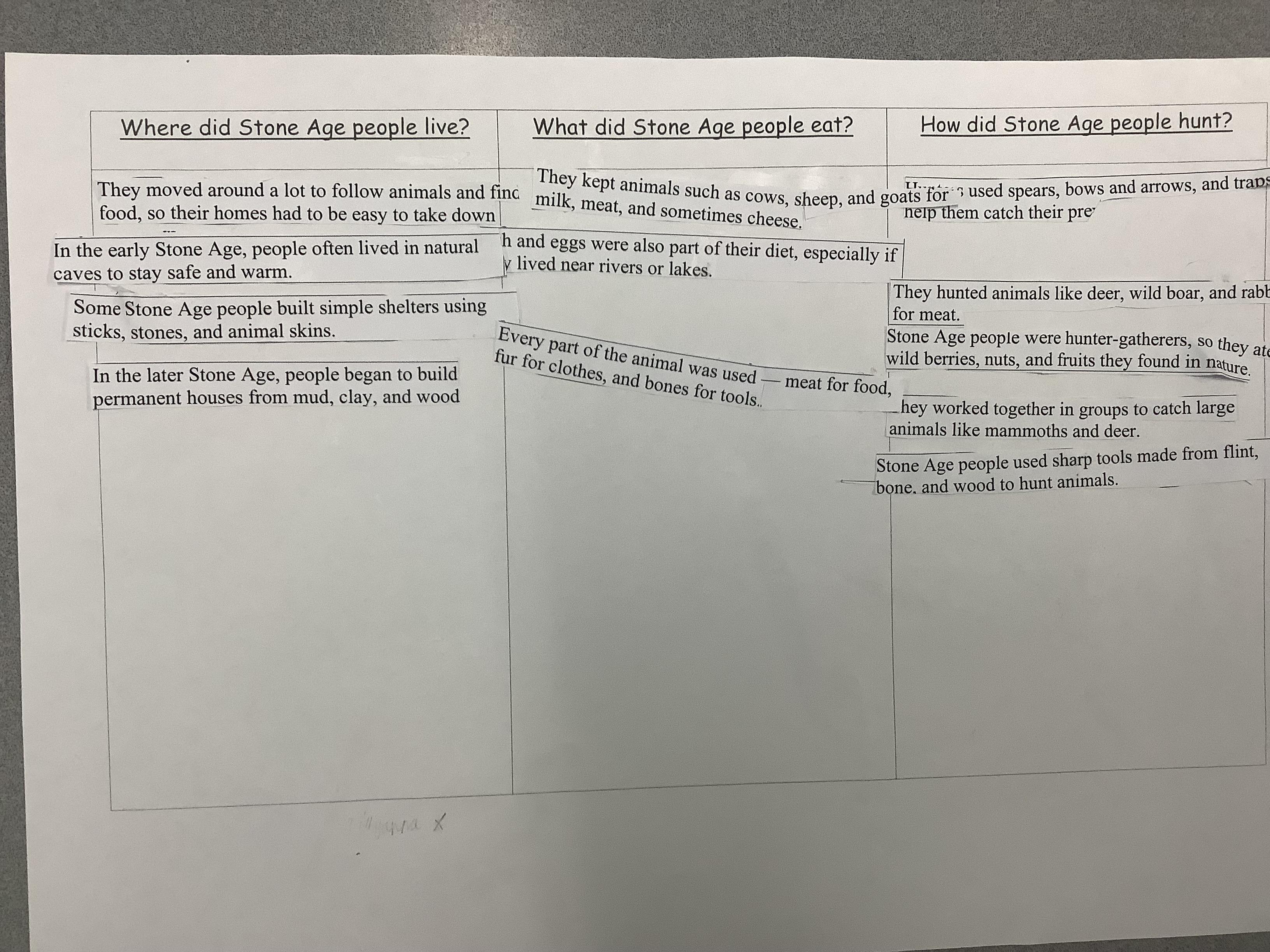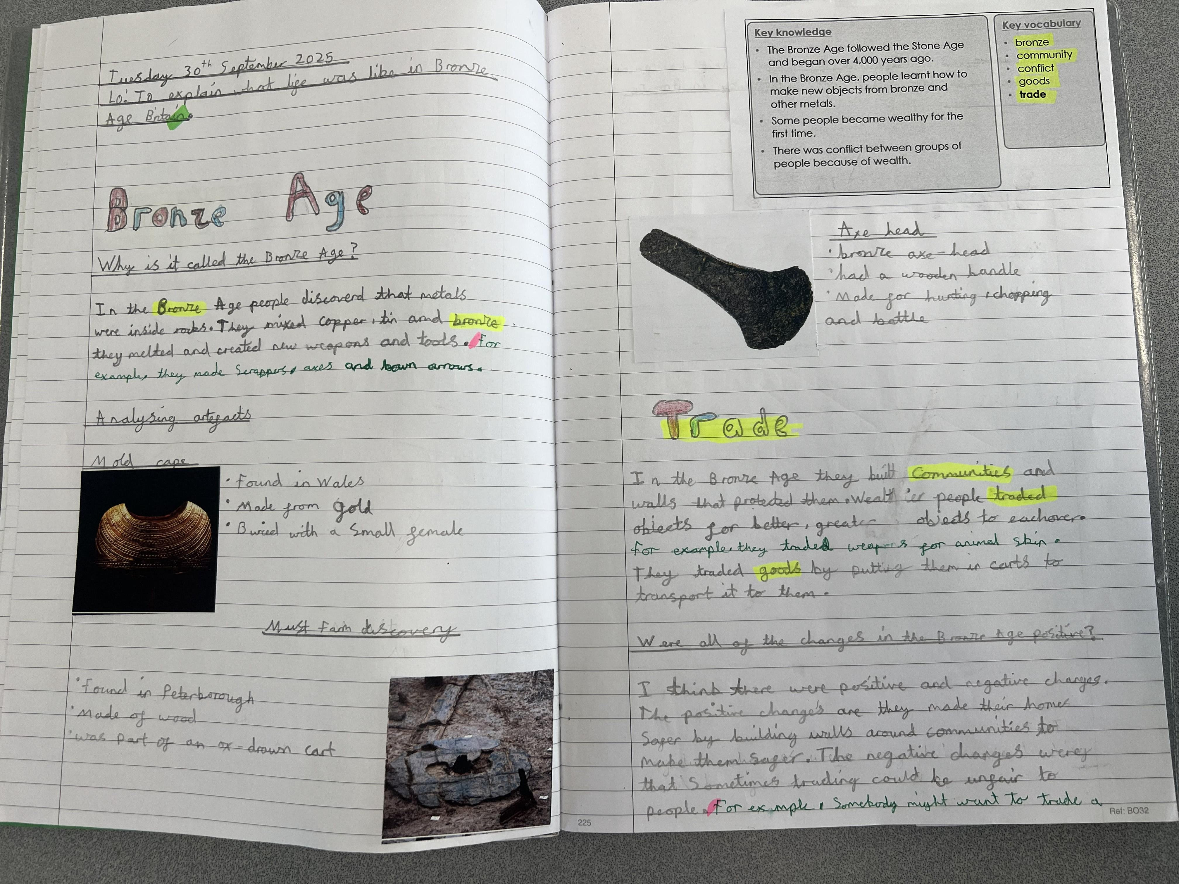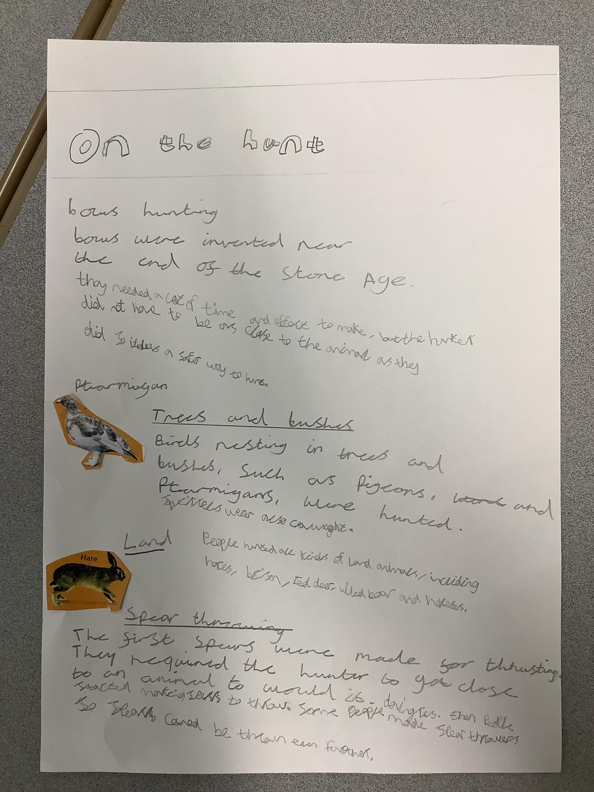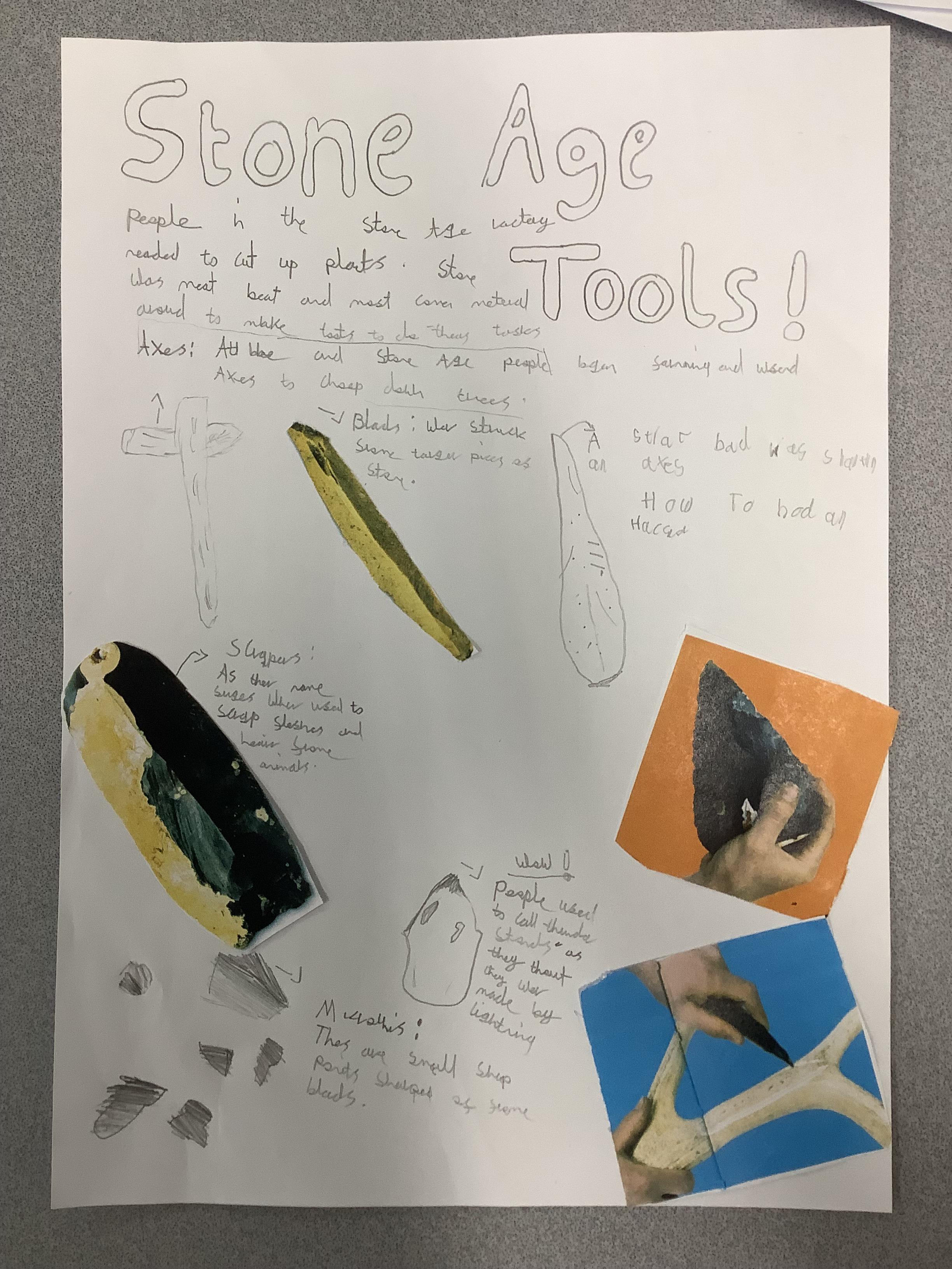 Year 3 have studied what life was like in the Stone Age, Bronze Age and Iron Age. They have studied where people lived, what they ate and how life evolved. Children have analysed sources and made connections based on the key knowledge they have learned.