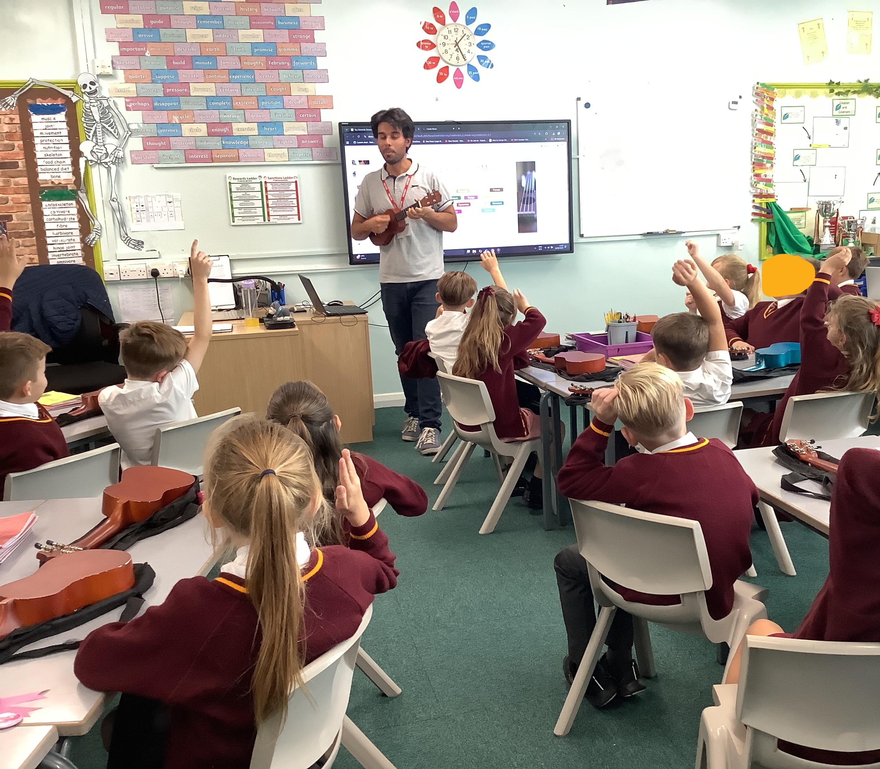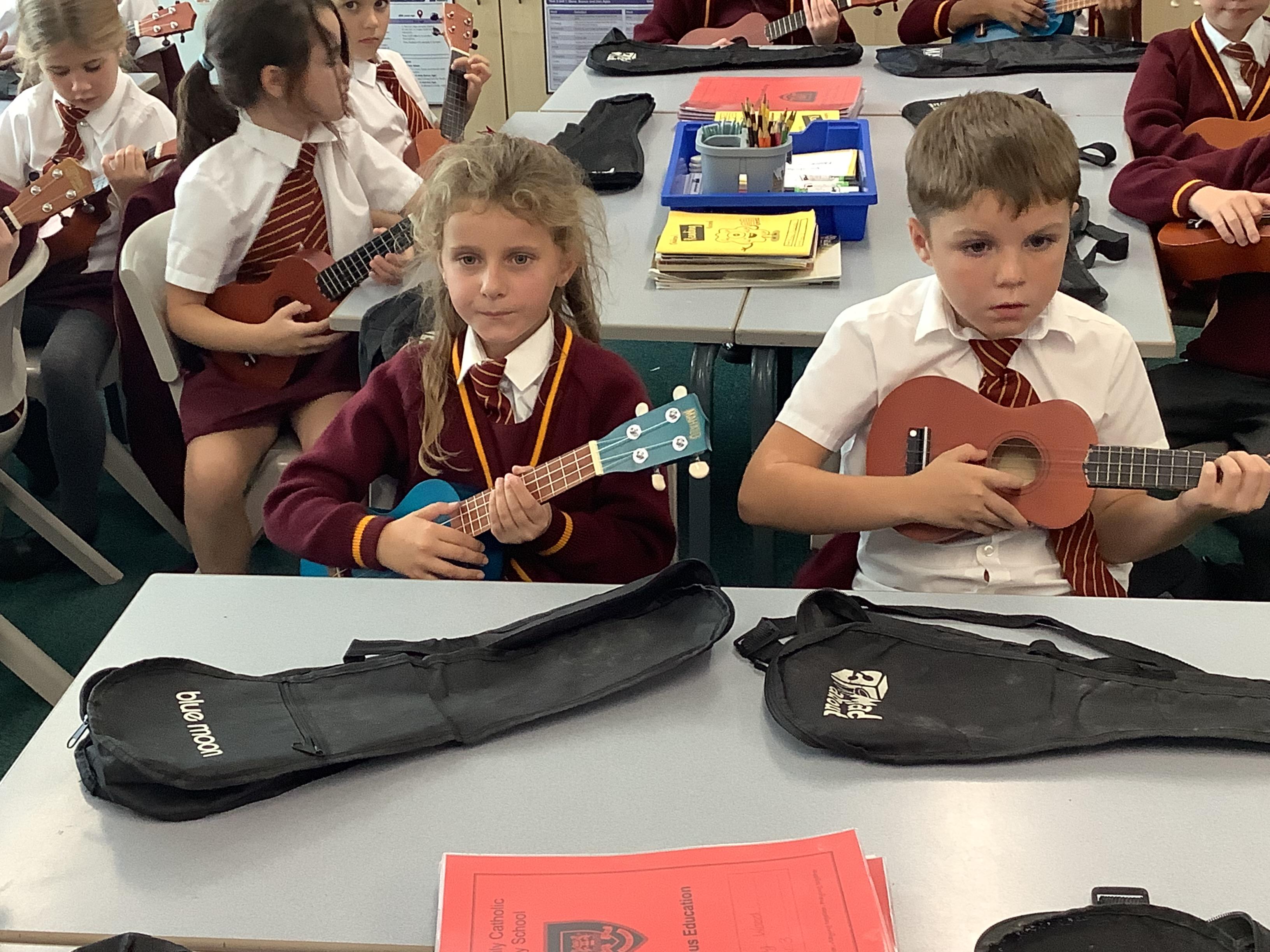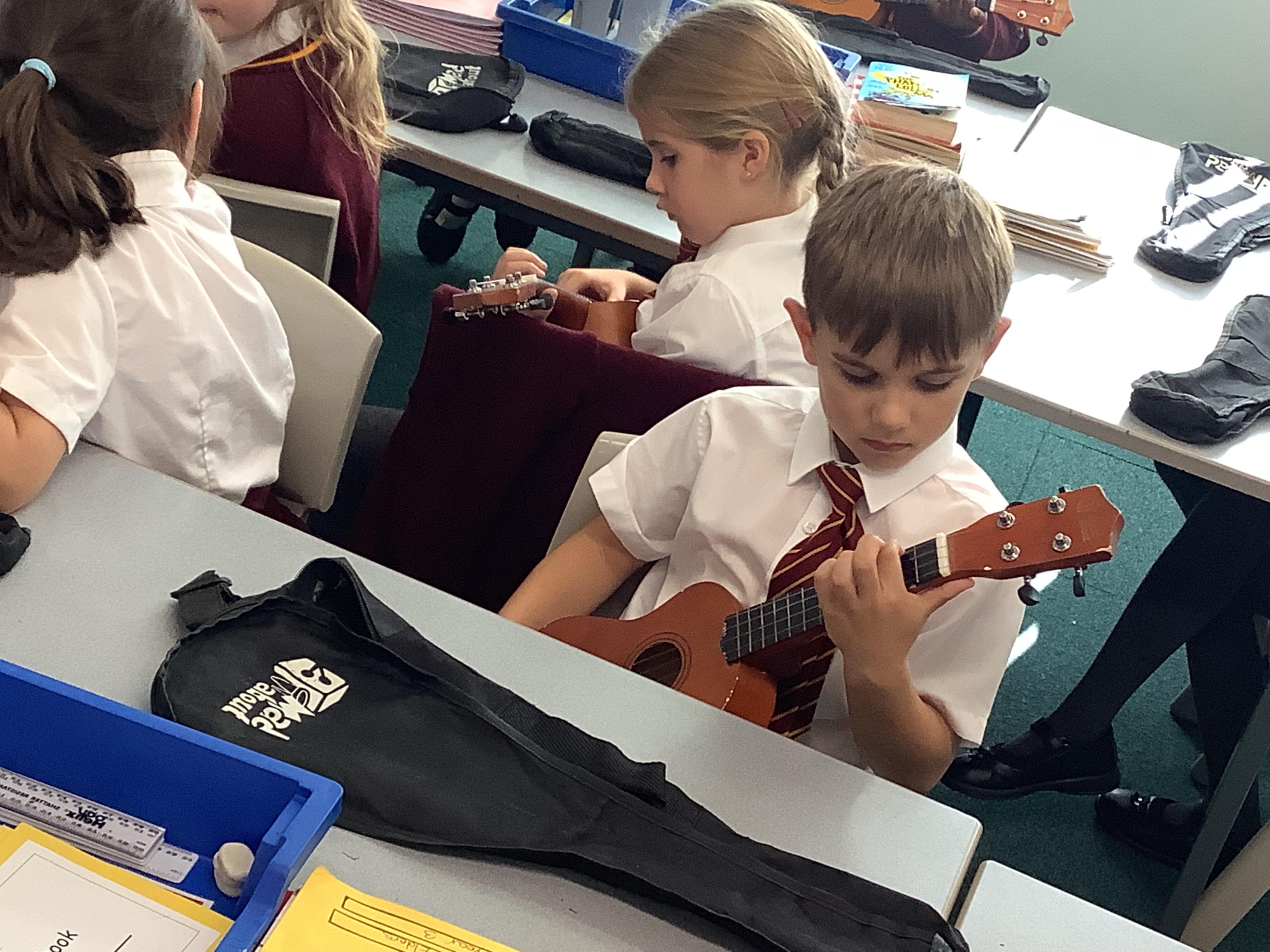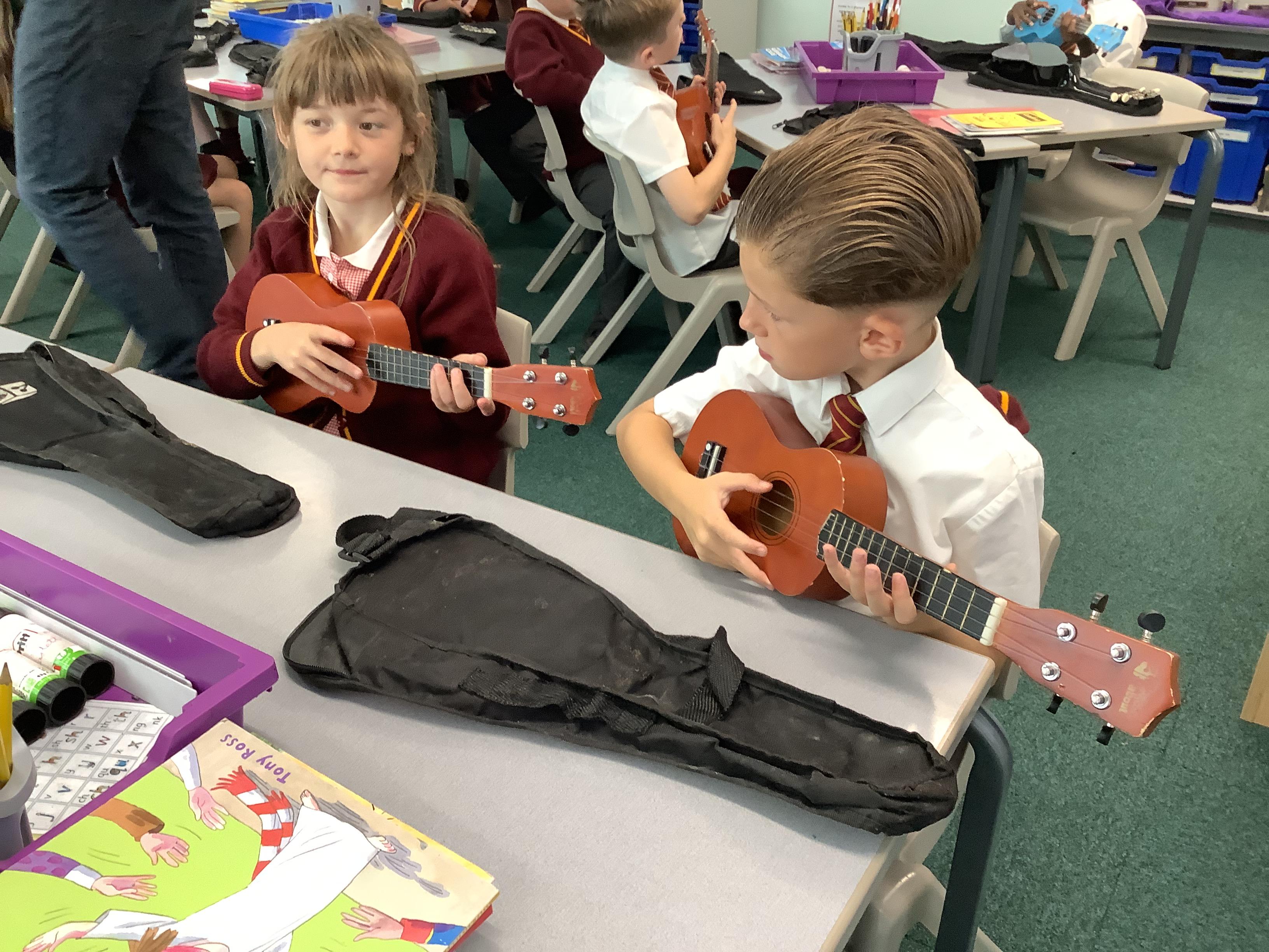 Year 3 have named each part of their ukulele and they have began to play two chords.