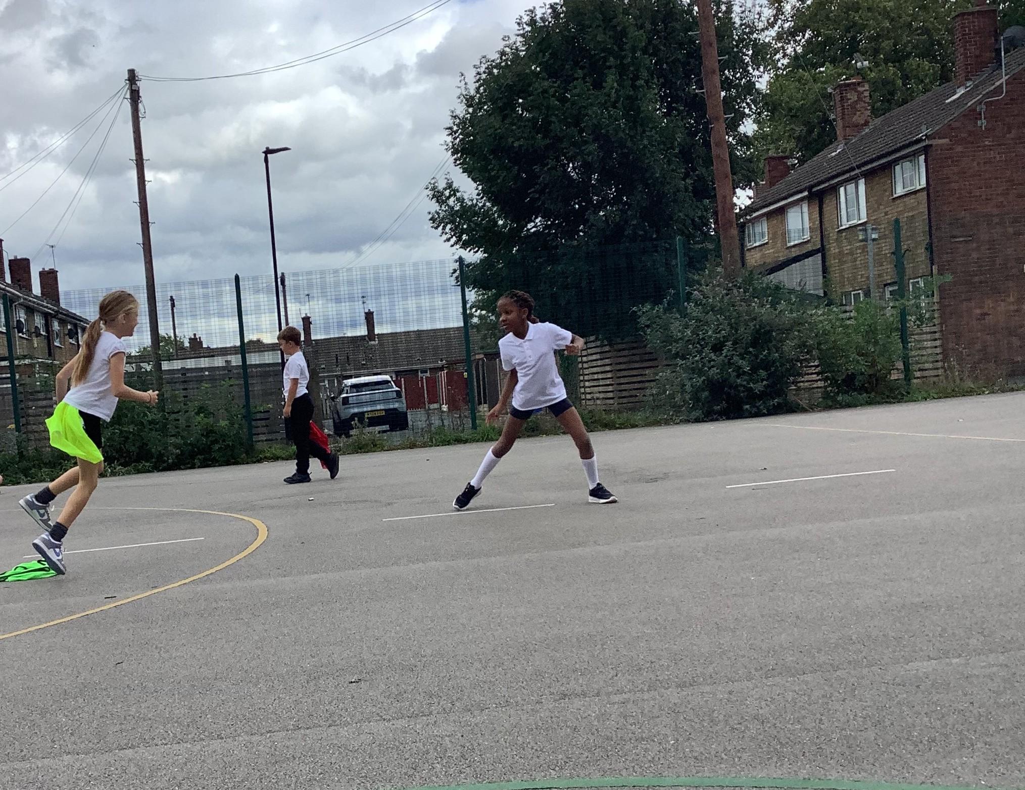 In PE, Year 3 have looked at the role of the defender. They have learned to mirror the attacker and to make sure they are always facing them.