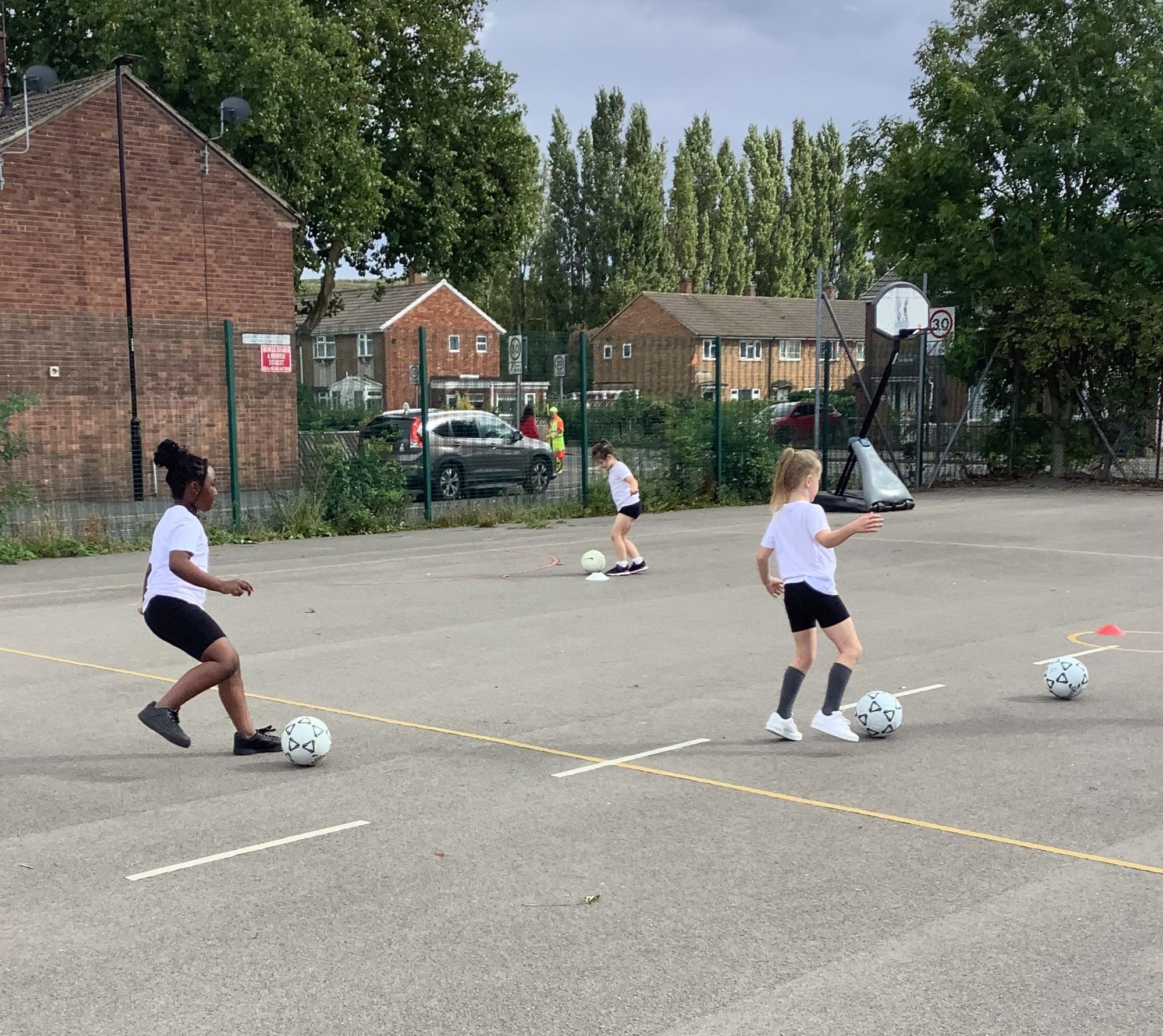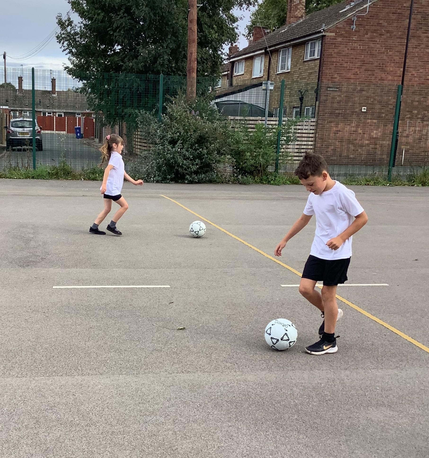 In PE, Year 3 have begun to understand the role of the attacker in football. The children focussed on using different parts of their foot to dribble the ball.