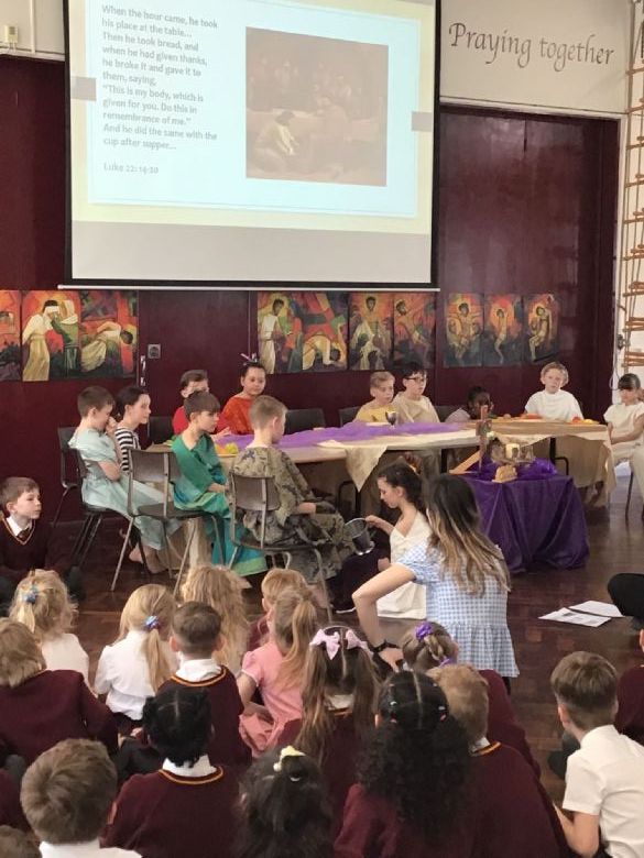 Year 3 and Year 4 pupils thoughtfully retold the story of the Last Supper with a sense of grace and reverence. Through their reflections, they demonstrated a growing understanding of its meaning, capturing the importance of sharing, community, and faith. Their retelling was both heartfelt and respectful, showing how this special moment continues to inspire kindness and reflection in our lives today.