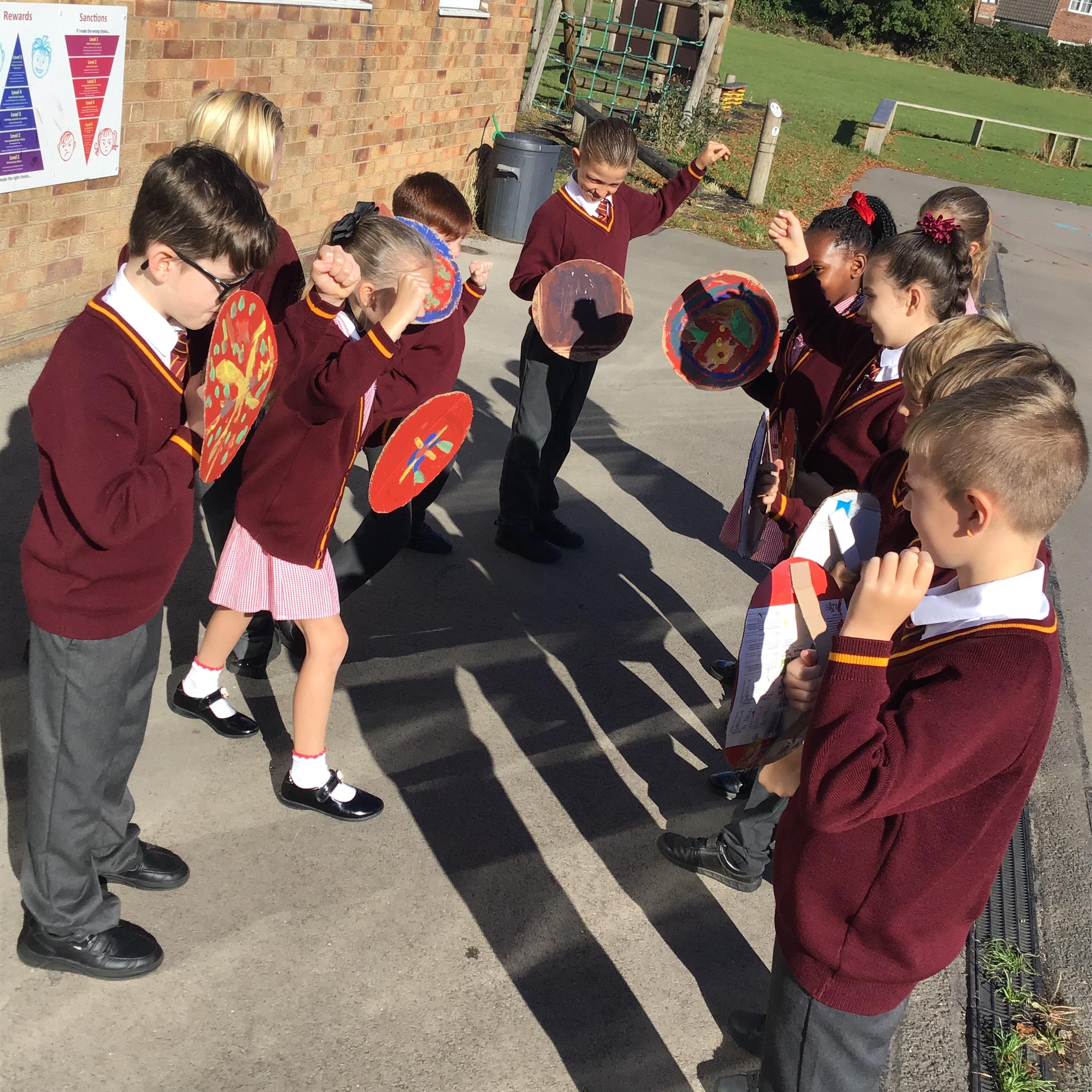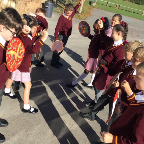 Year 4 have embarked on their second writing journey – crafting Roman historical narratives. To spark ideas, the children watched exciting reenactments of Roman battles, gathering rich vocabulary to bring their stories to life. They then stepped into the shoes of Roman soldiers themselves, exploring different battle formations and imagining the experiences of life on the battlefield.