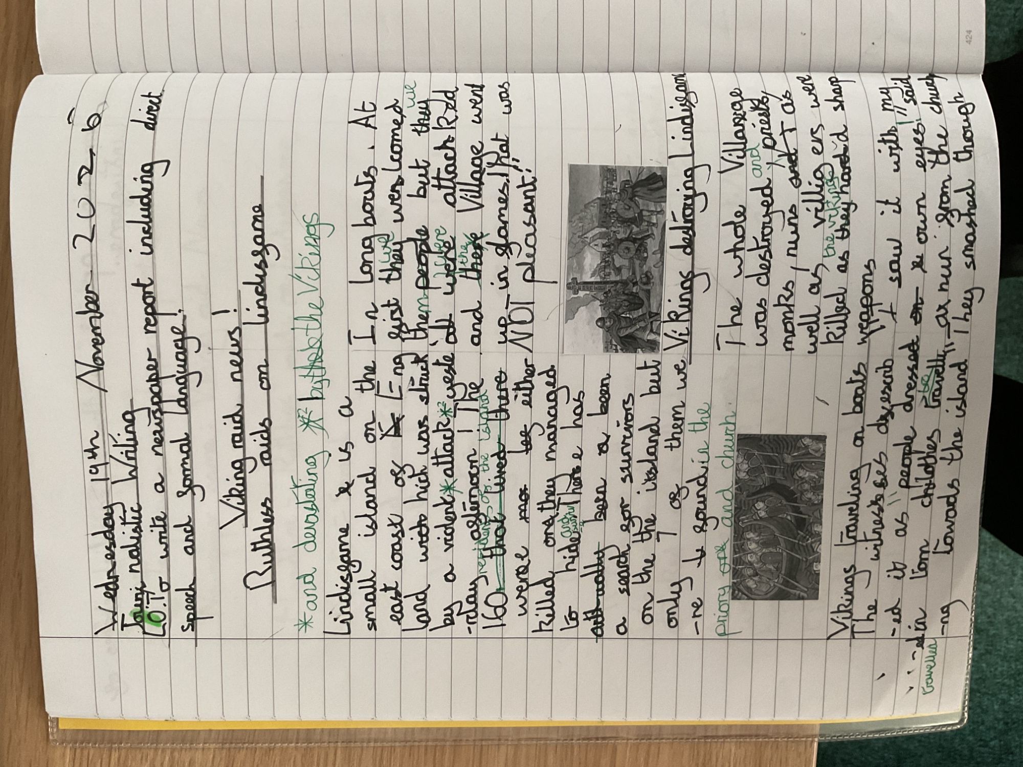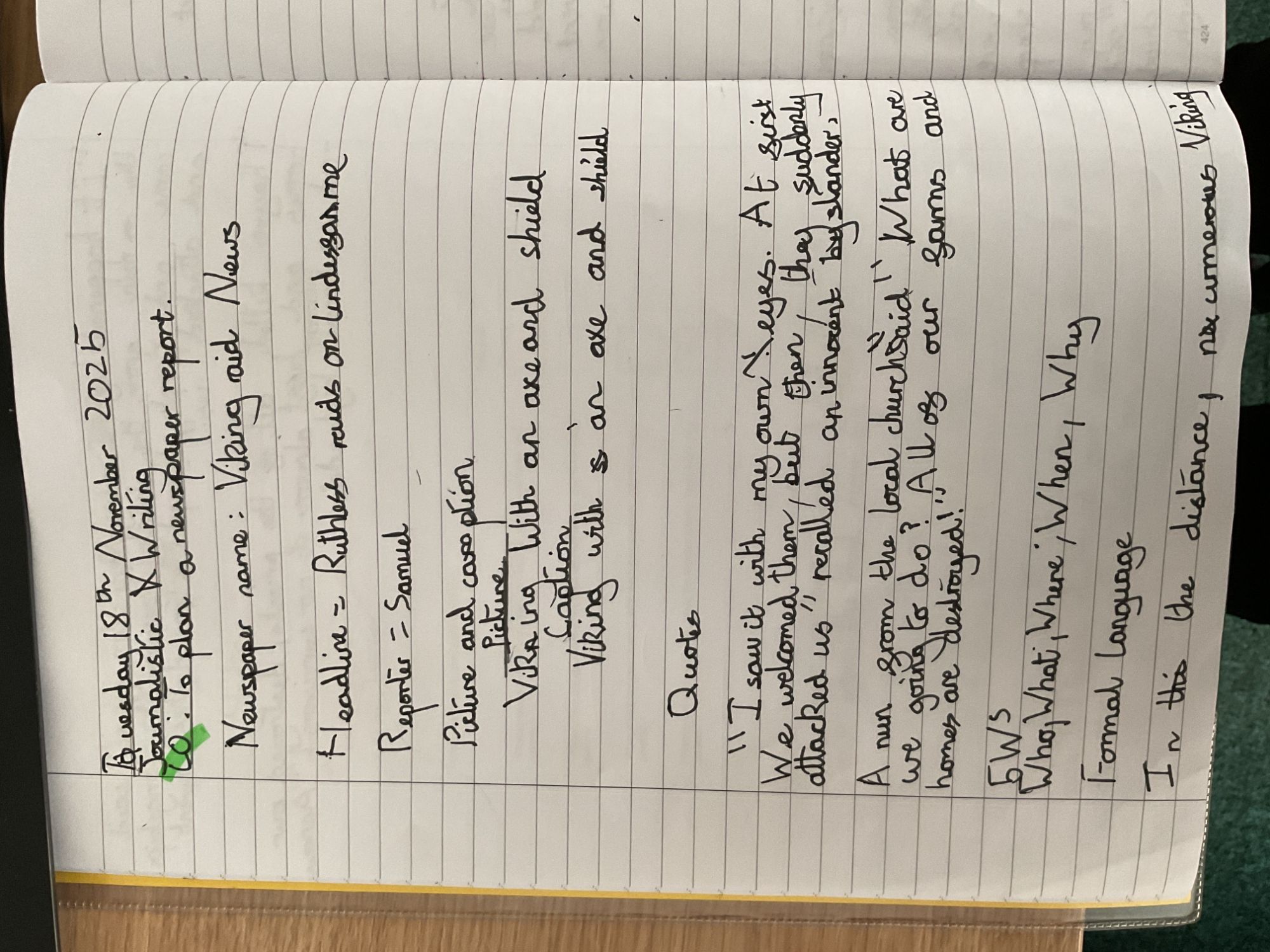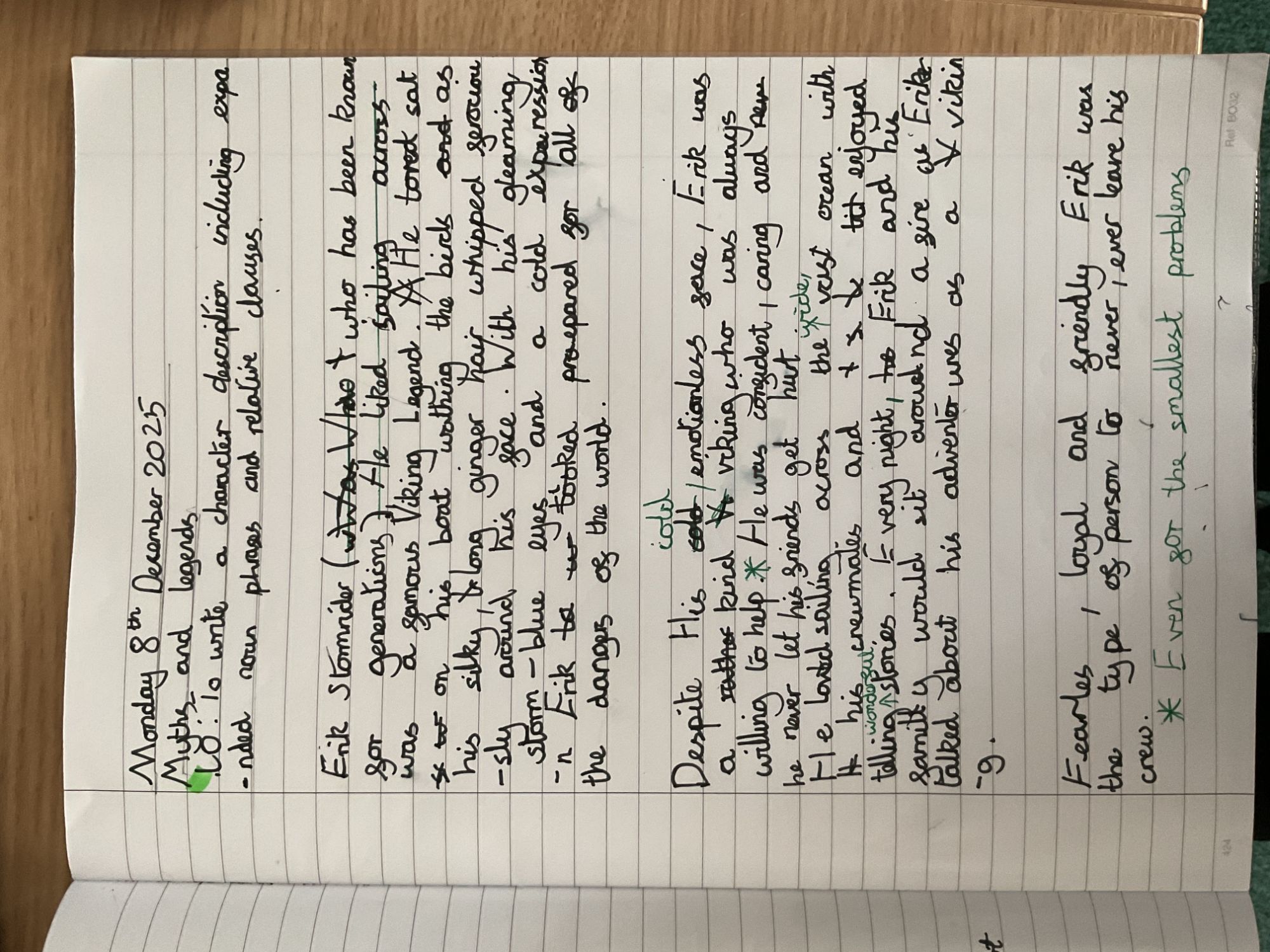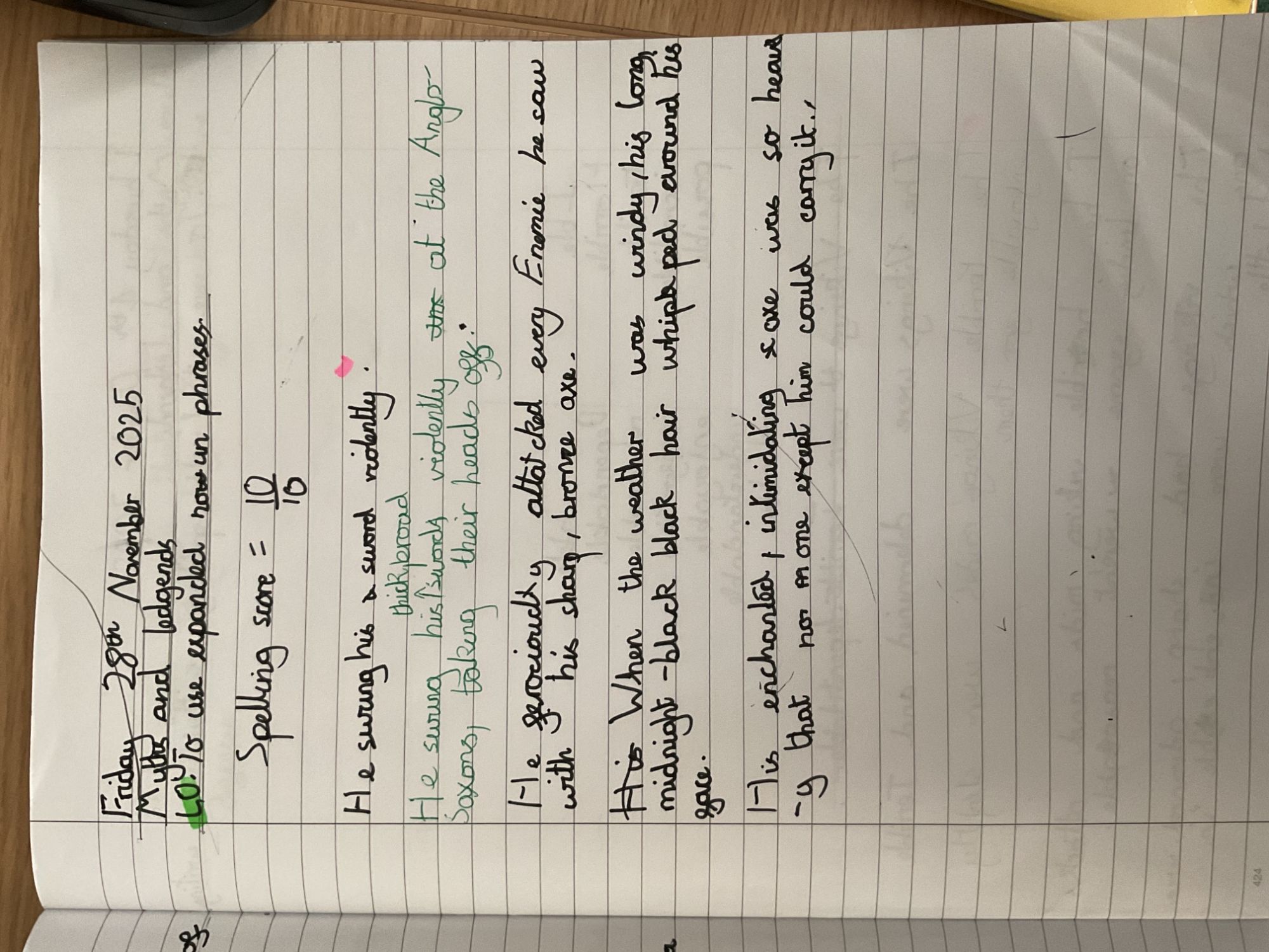Year 5 wrote a myths and legends character description ad journalistic writing; both linked to our Viking topic