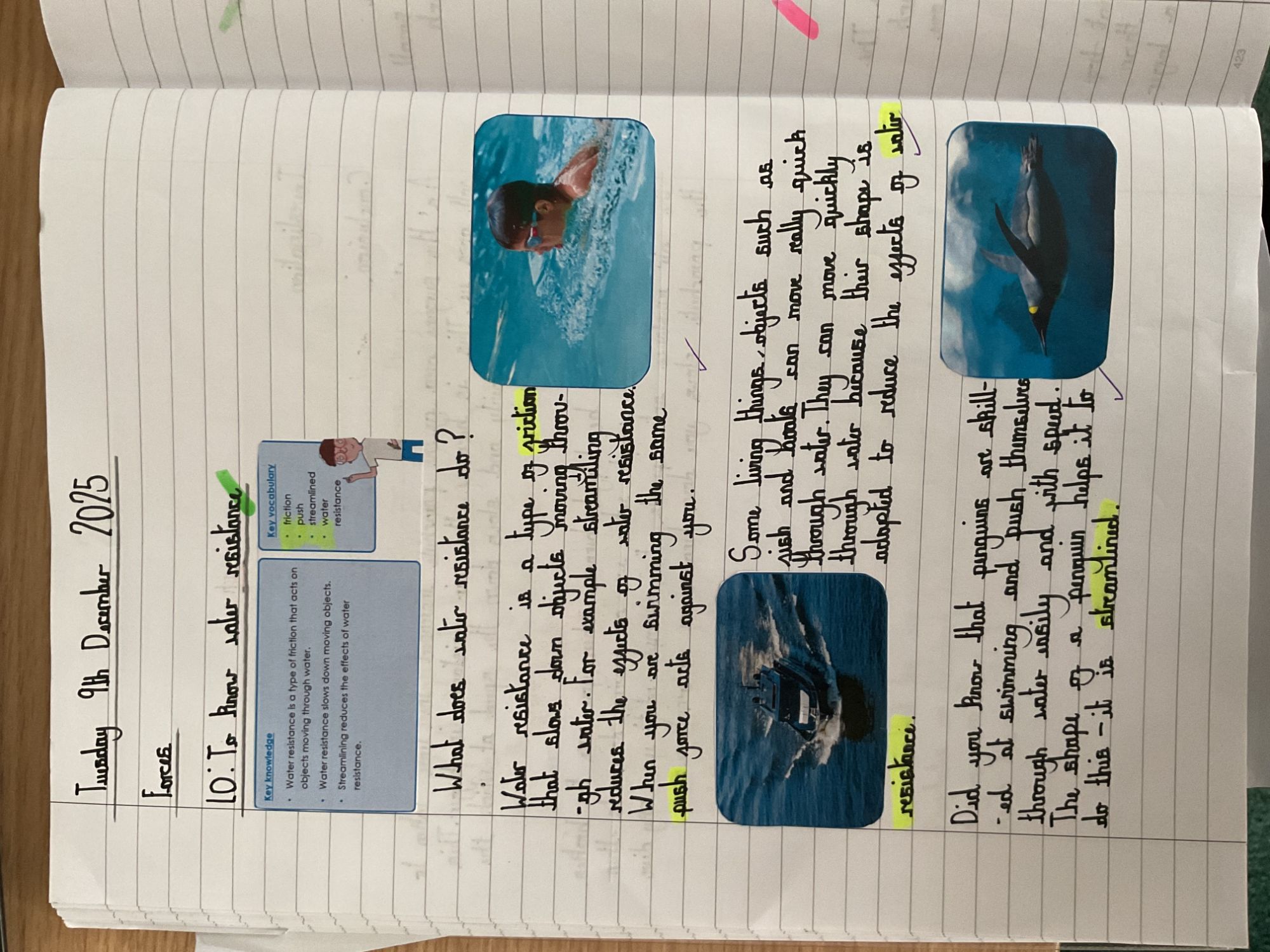 In forces, Year 5 learnt about forces, gravity, friction, air resistance and water resistance