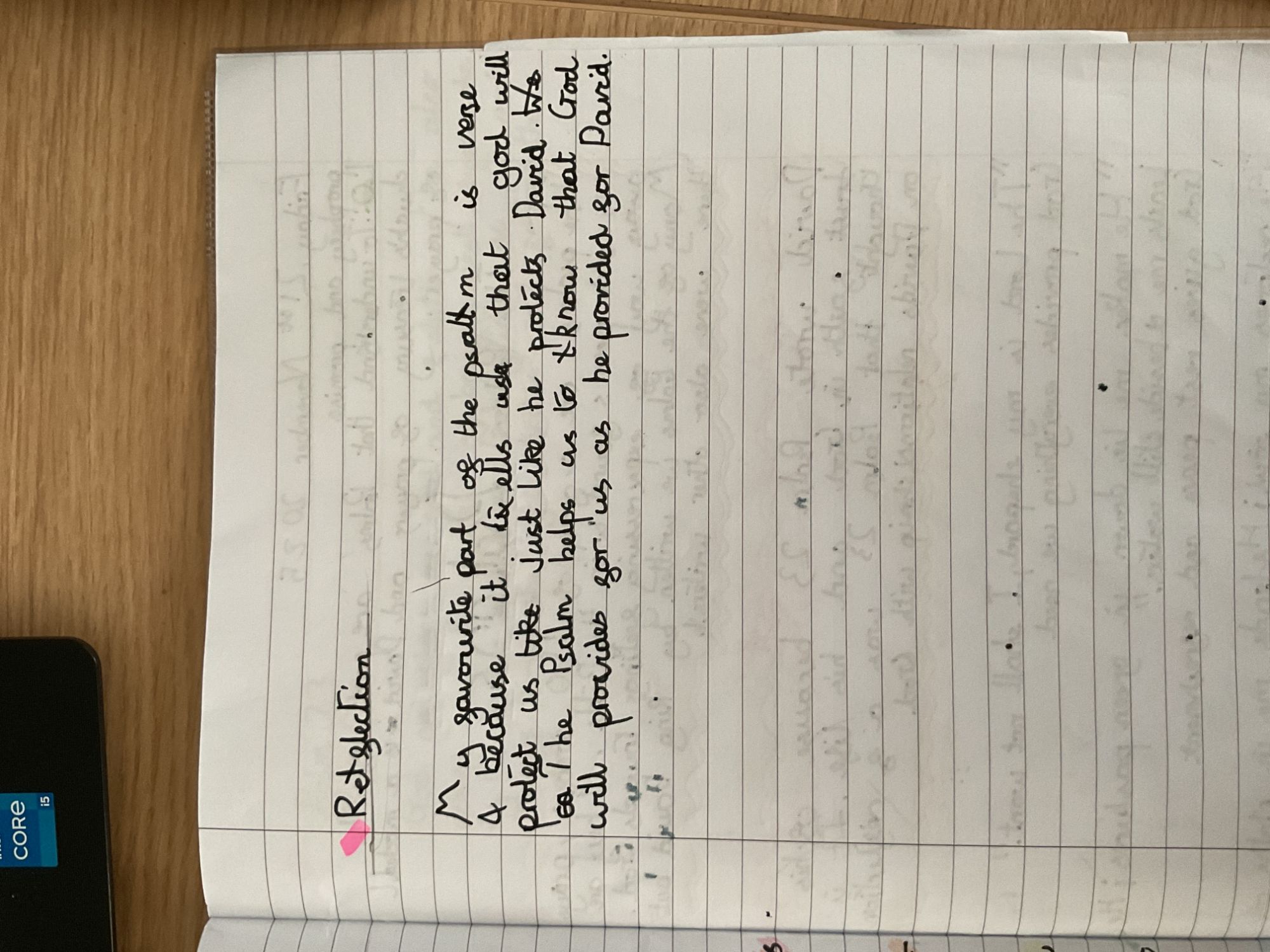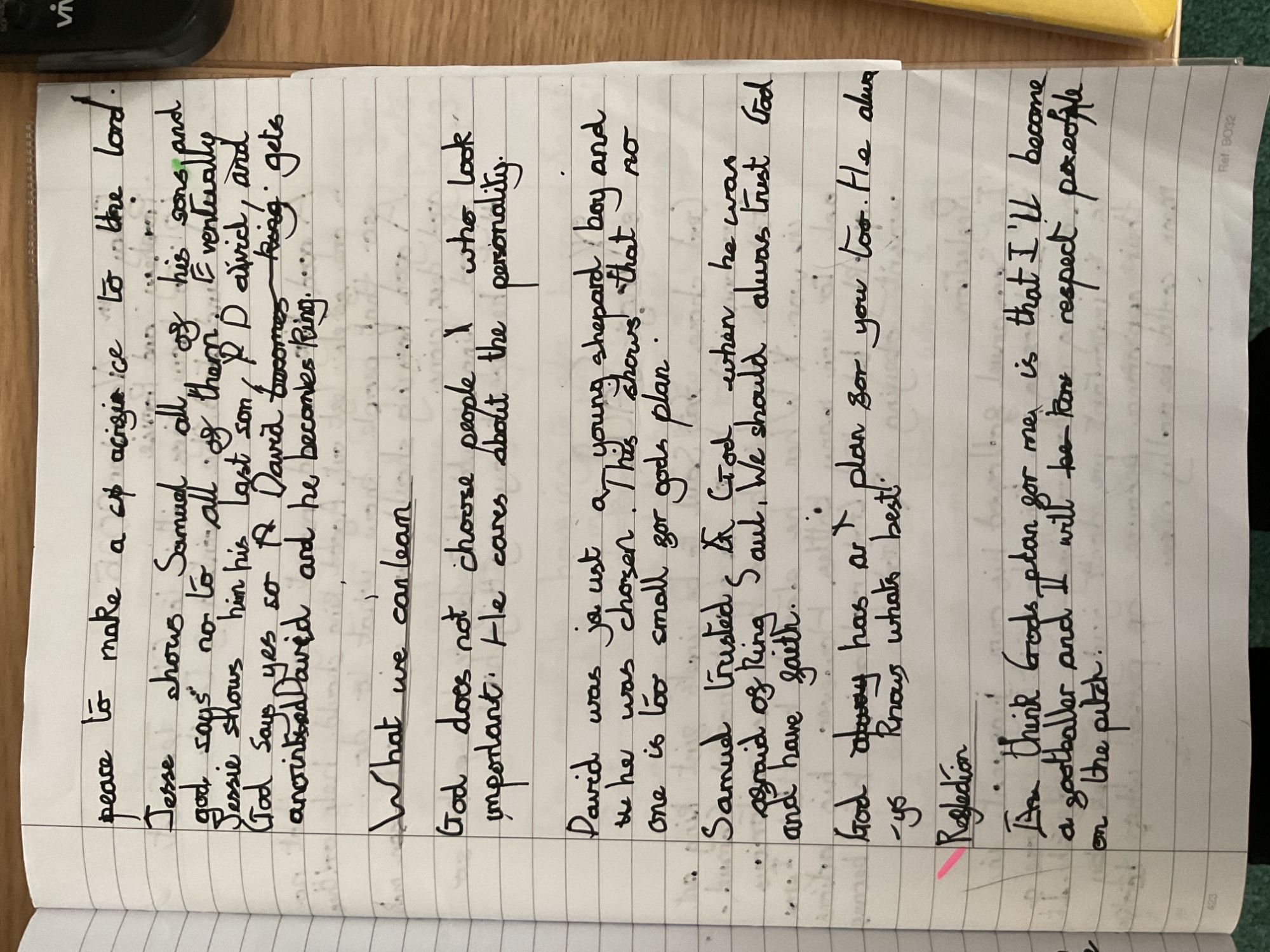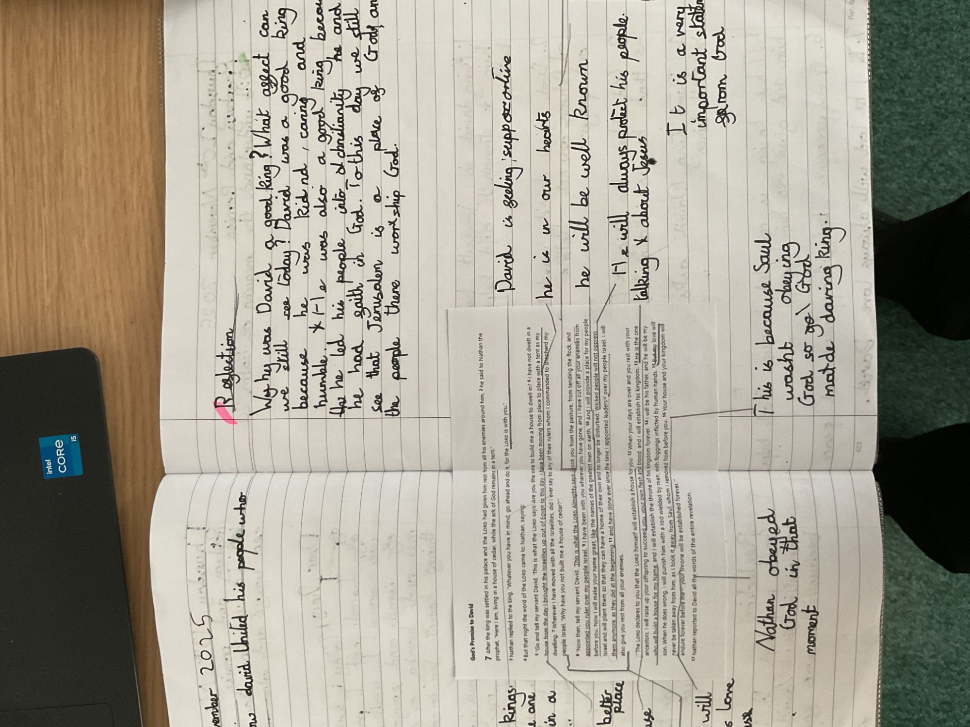 Year 5 analysed scripture from the Old Testament including psalms; we looked at King David's life and his devotion to Jesus in detail