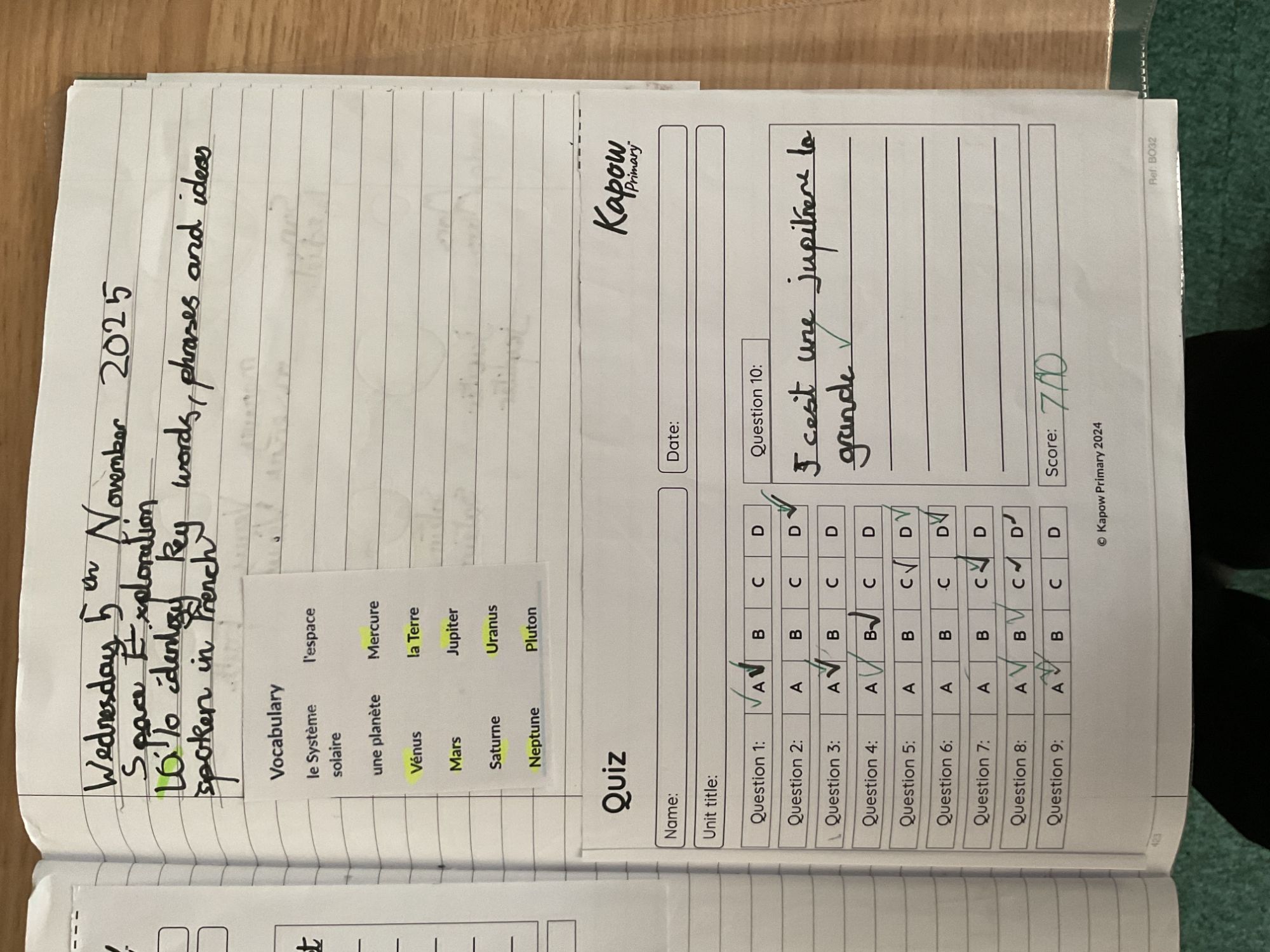 Year 5 enjoyed described and comparing aliens in french