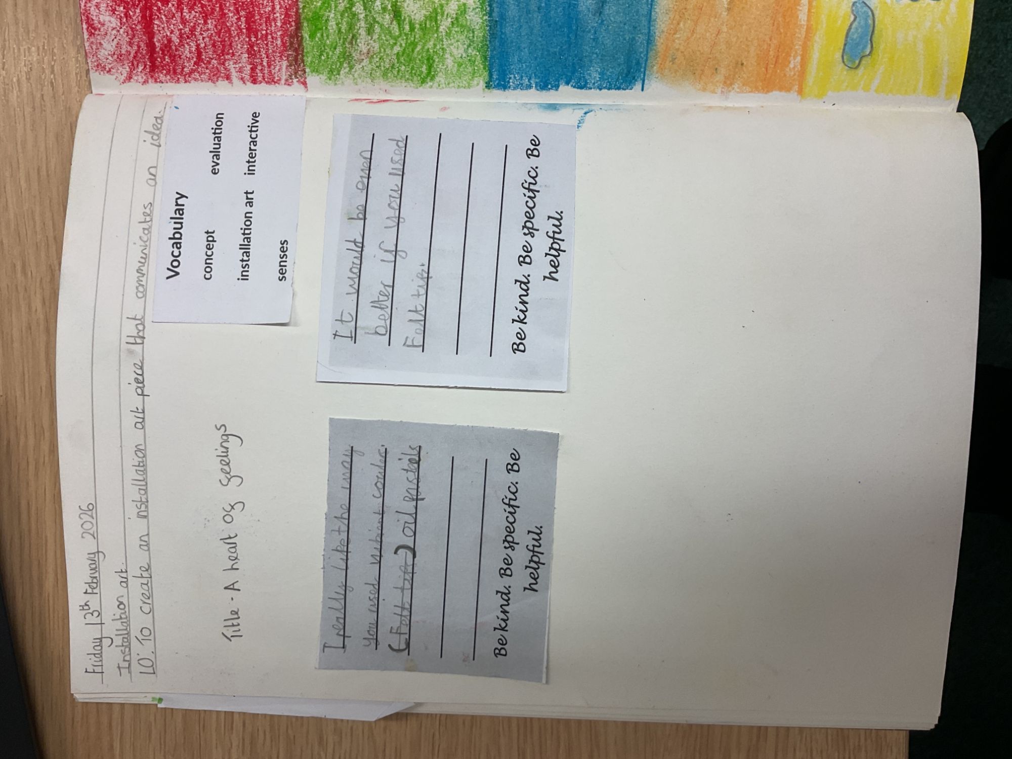 In Art, Year 5 learnt about the different techniques and meaning of Installation Art and then designed and created their own pieces of artwork.