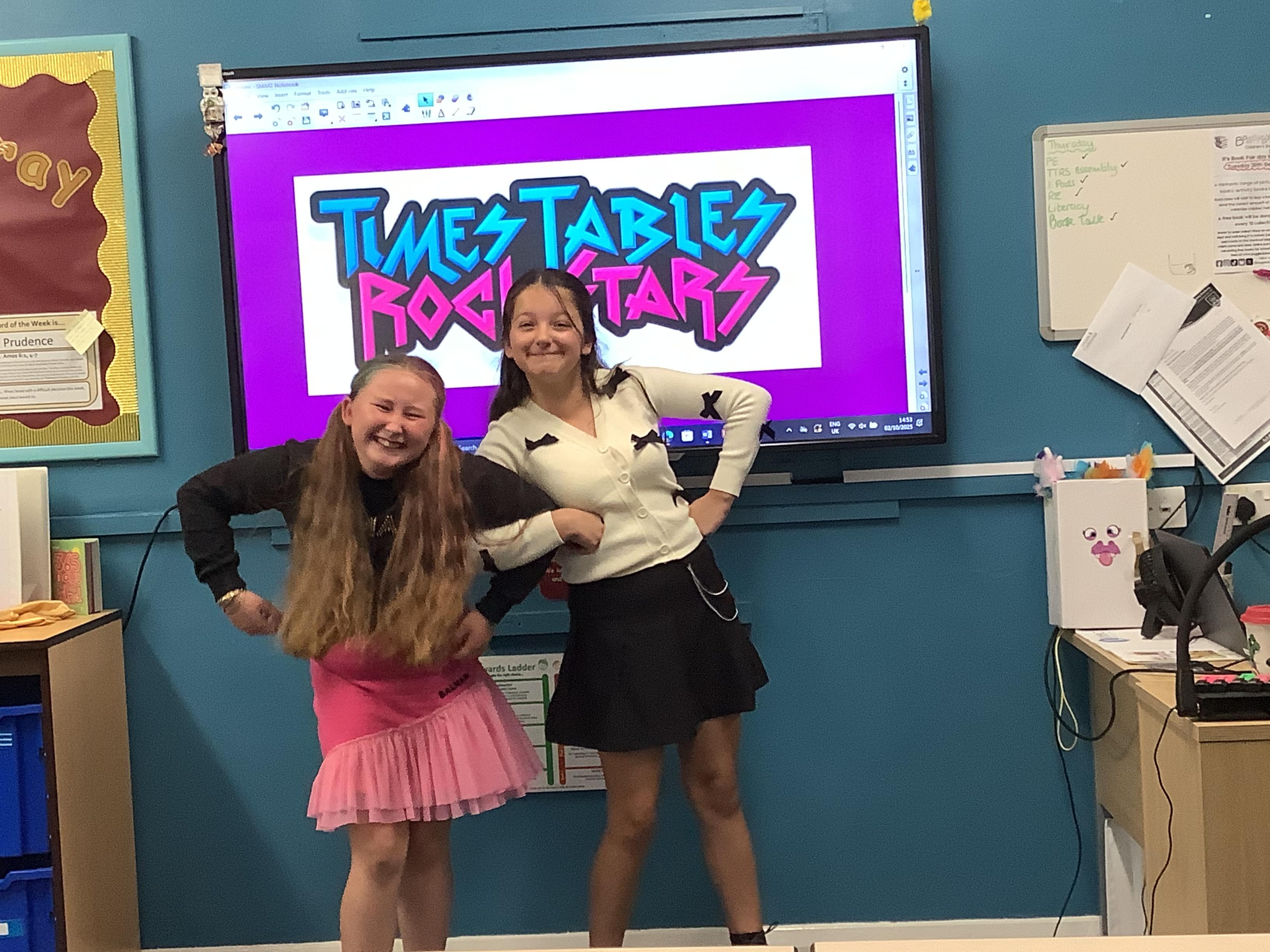 To celebrate and promote times tables in school, year 6 took part in TTRockstars day where they dressed as rockstars and took on times tables challenges. Take a look at our rock stars below...