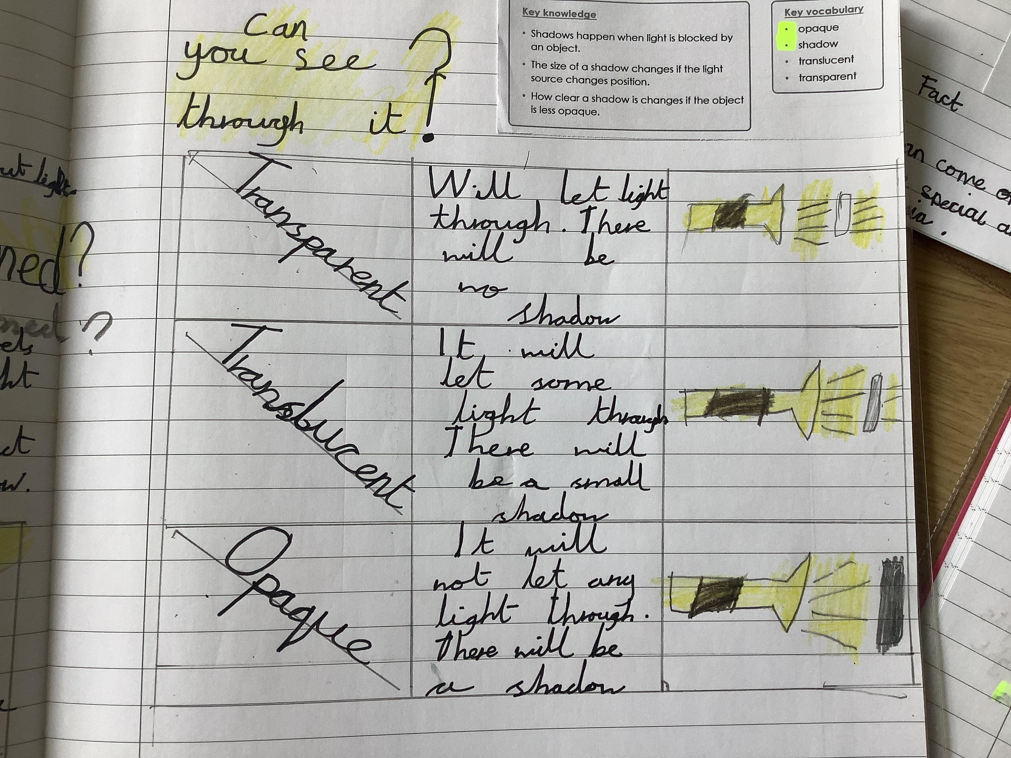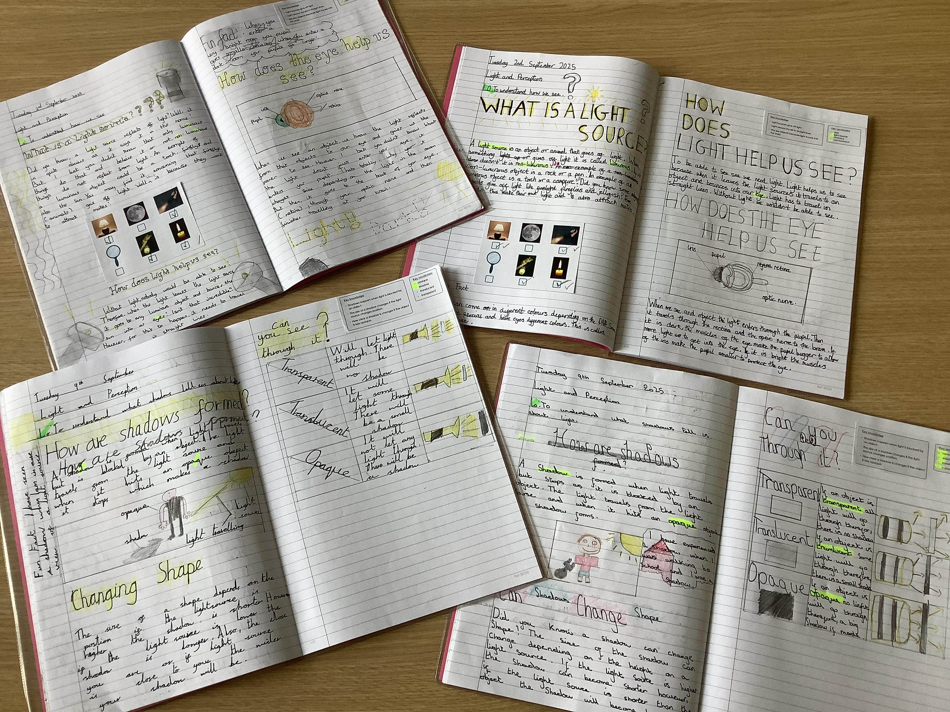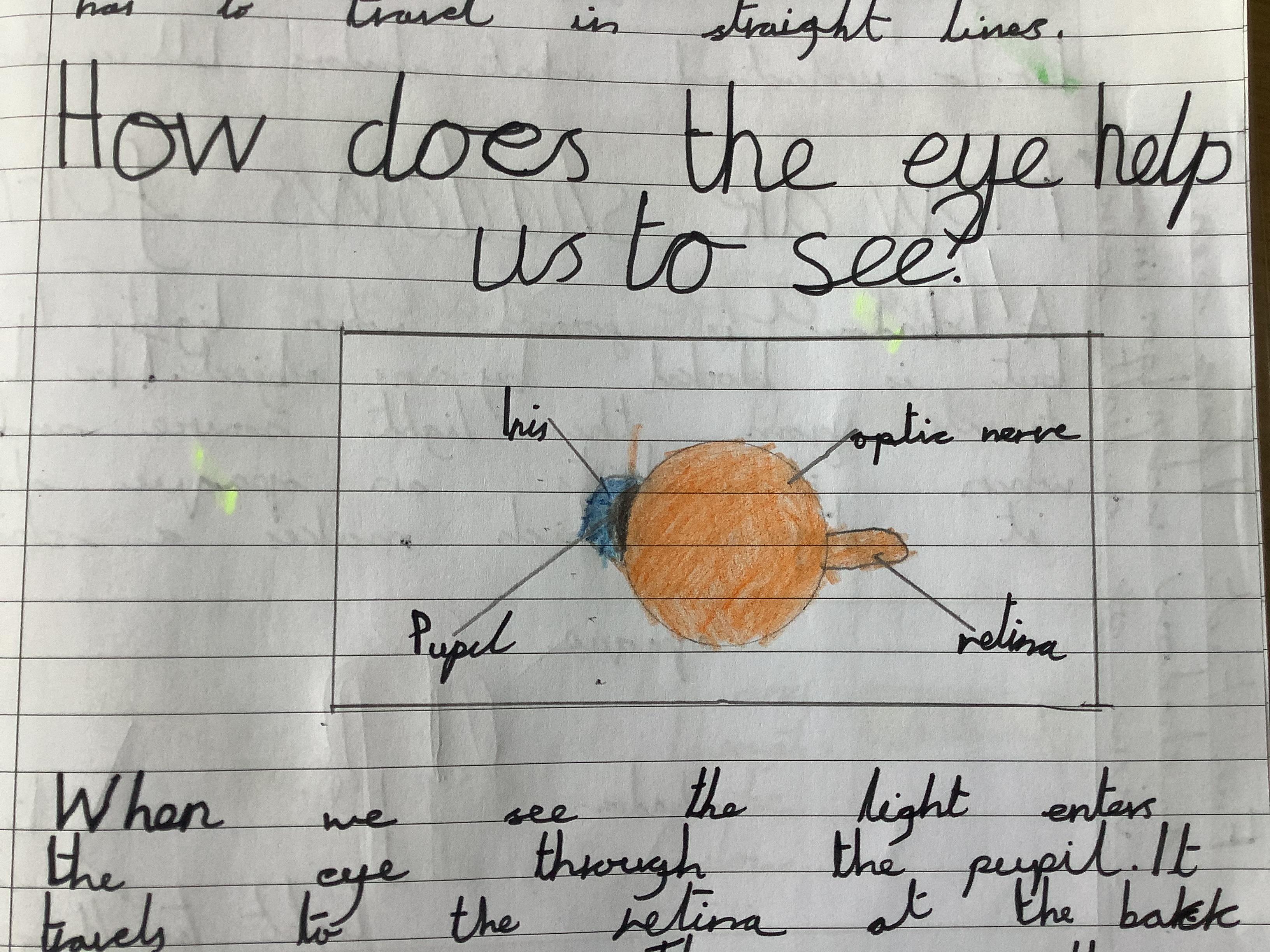 The children have been learning about light and how it helps us see. They have explored how light enters the eye and is then transformed into images through the retina and optic nerve.