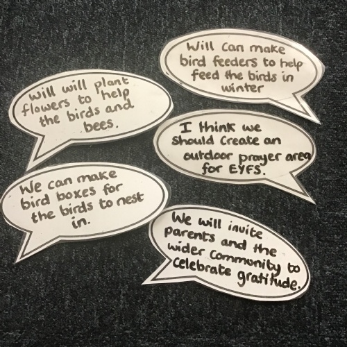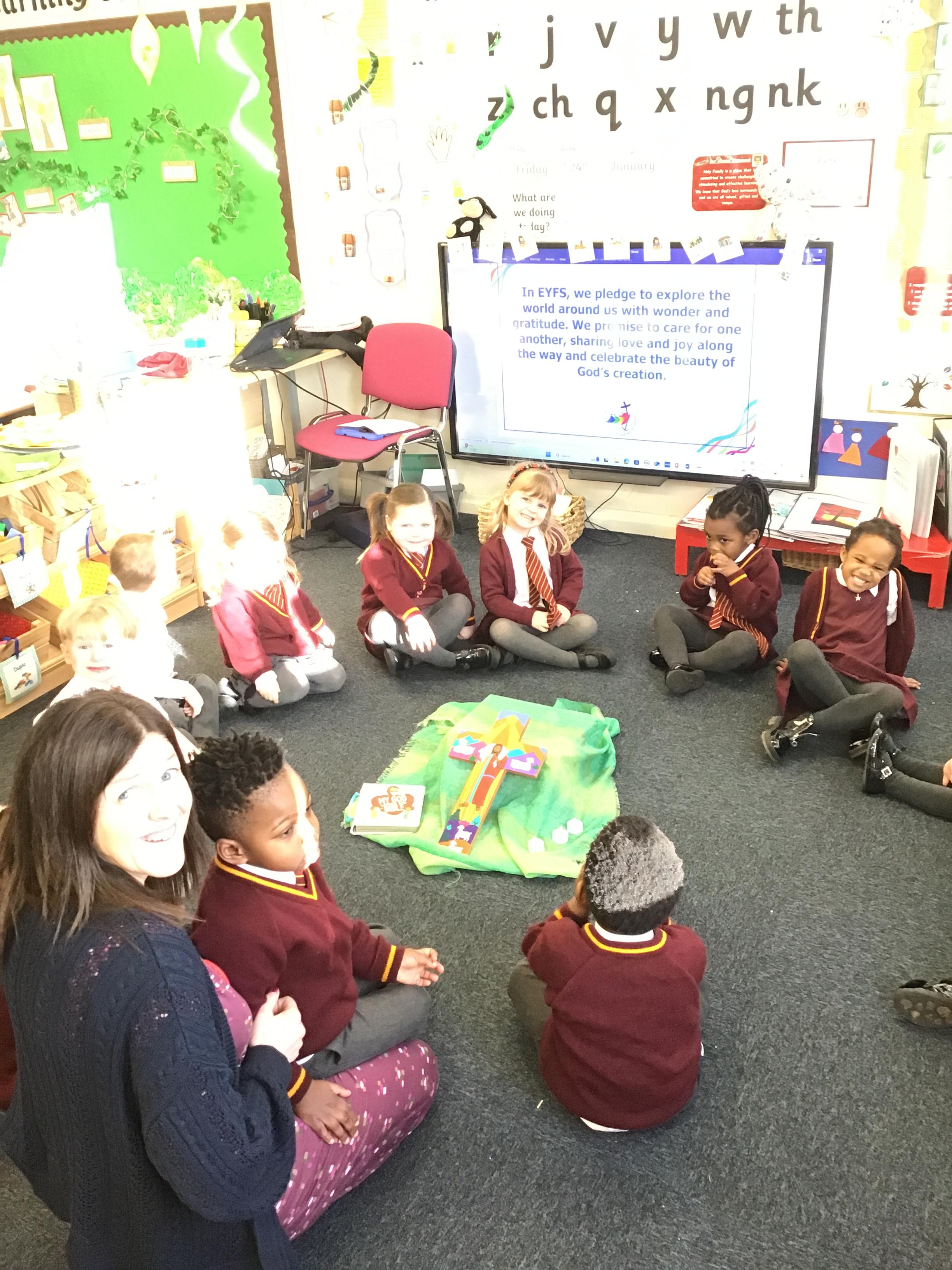 Children in Reception gathered together and discussed our Pledge. We spoke about how we can contribute to celebrating the beauty of God's Creation and said a prayer to thank God for our beautiful world.