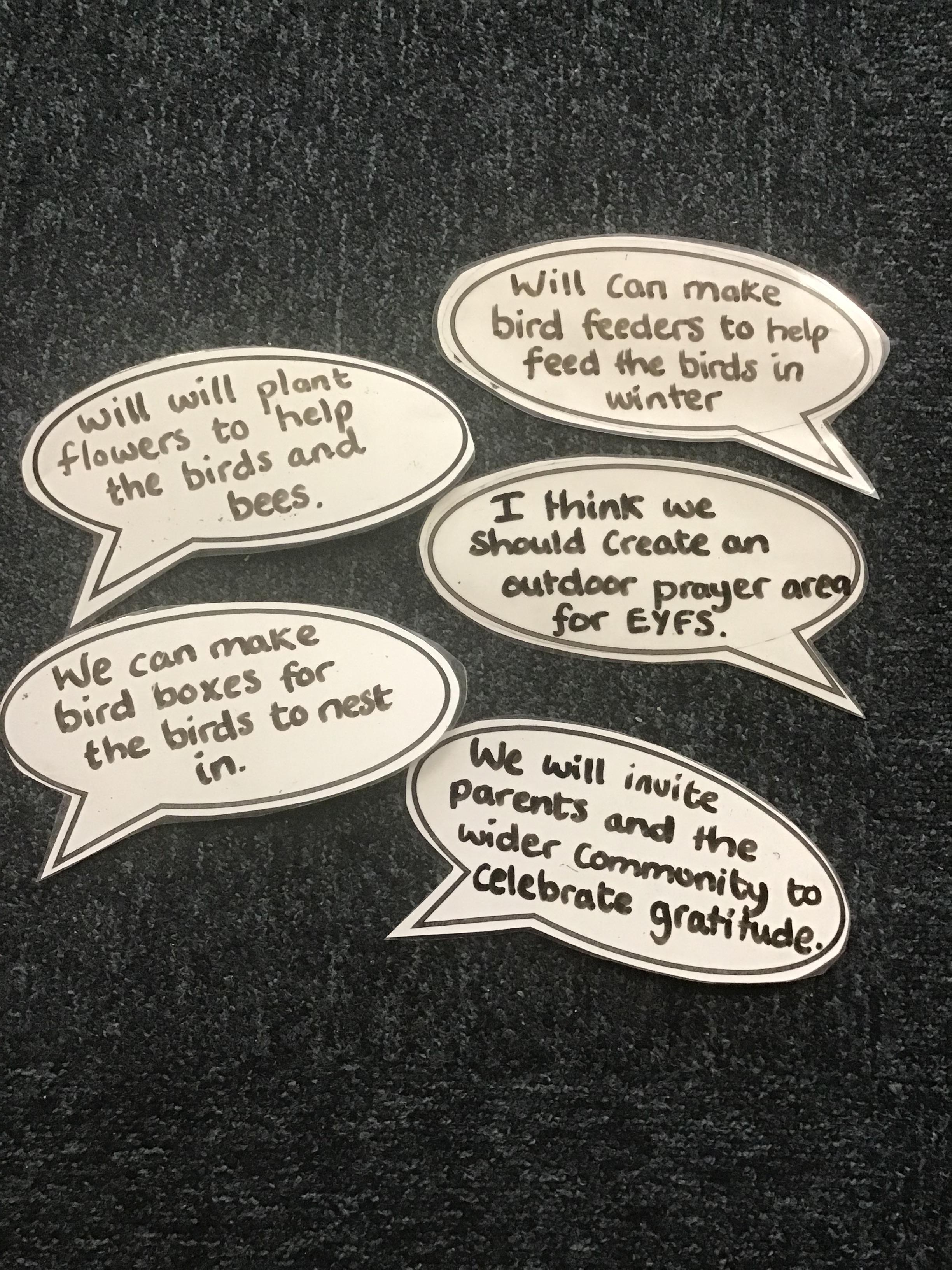 The children in nursery talked about our Pledge. We thought about the beautiful world that God had created for us and how we could look after it.